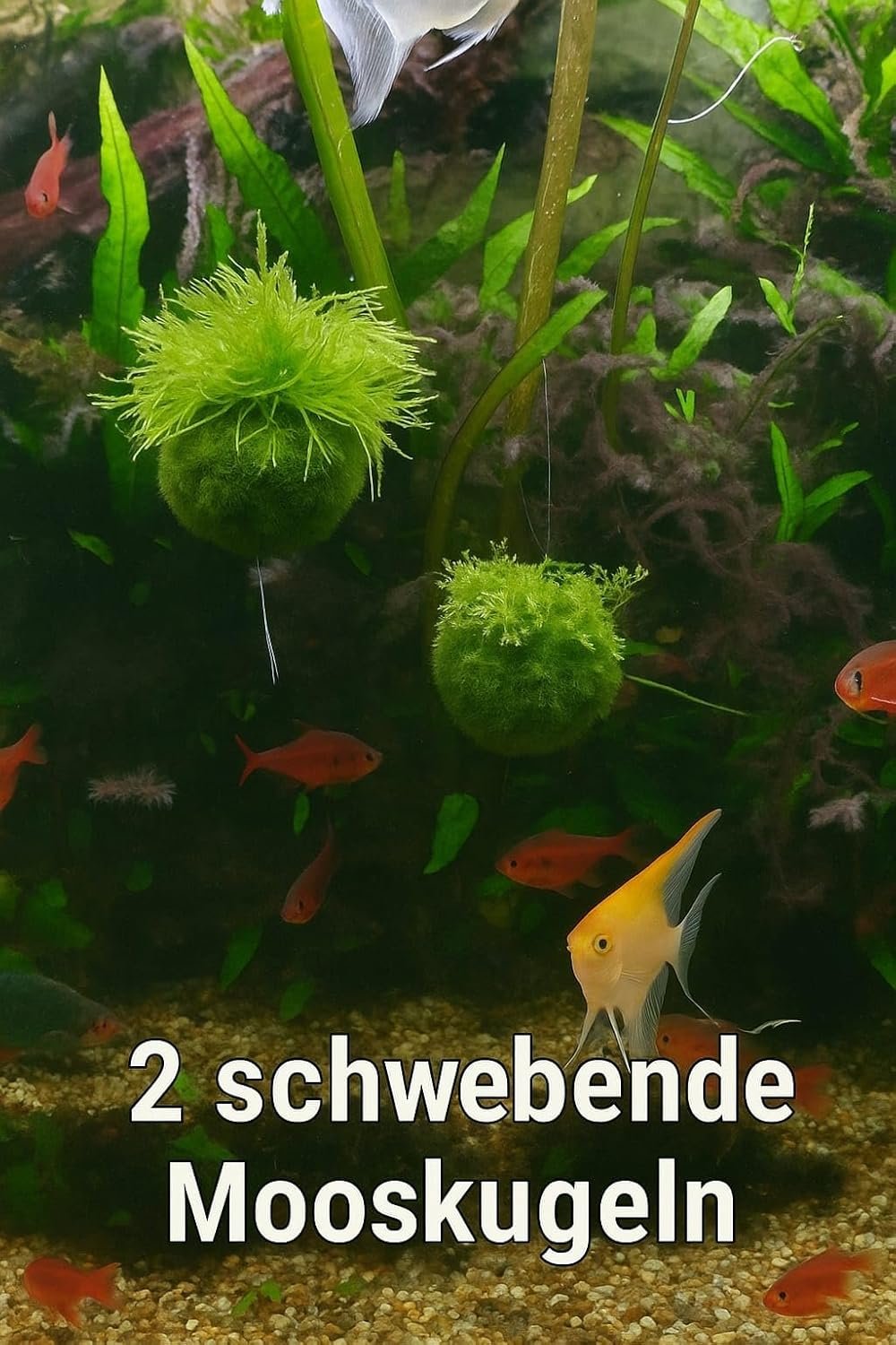 Schwebend und beweglich: Individuell anpassbar: Jeder Moosball ist mit einer transparenten Angelschnur auf einem Korkstück (ca. 3 x 3 cm) ausgestattet. Die Länge lässt sich verstellen oder fixieren – für eine natürliche Bewegung im Wasser.