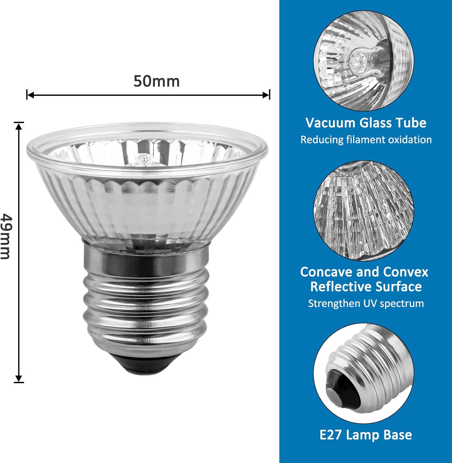 Weit verbreitet: E27 UVA UVB-Lampen für verschiedene Reptilien und Amphibien, darunter Schildkröten, Eidechsen, Schlangen, Frösche, Spinnen, Bartagamen, Geckos, Leguane, Sukkulenten und mehr.