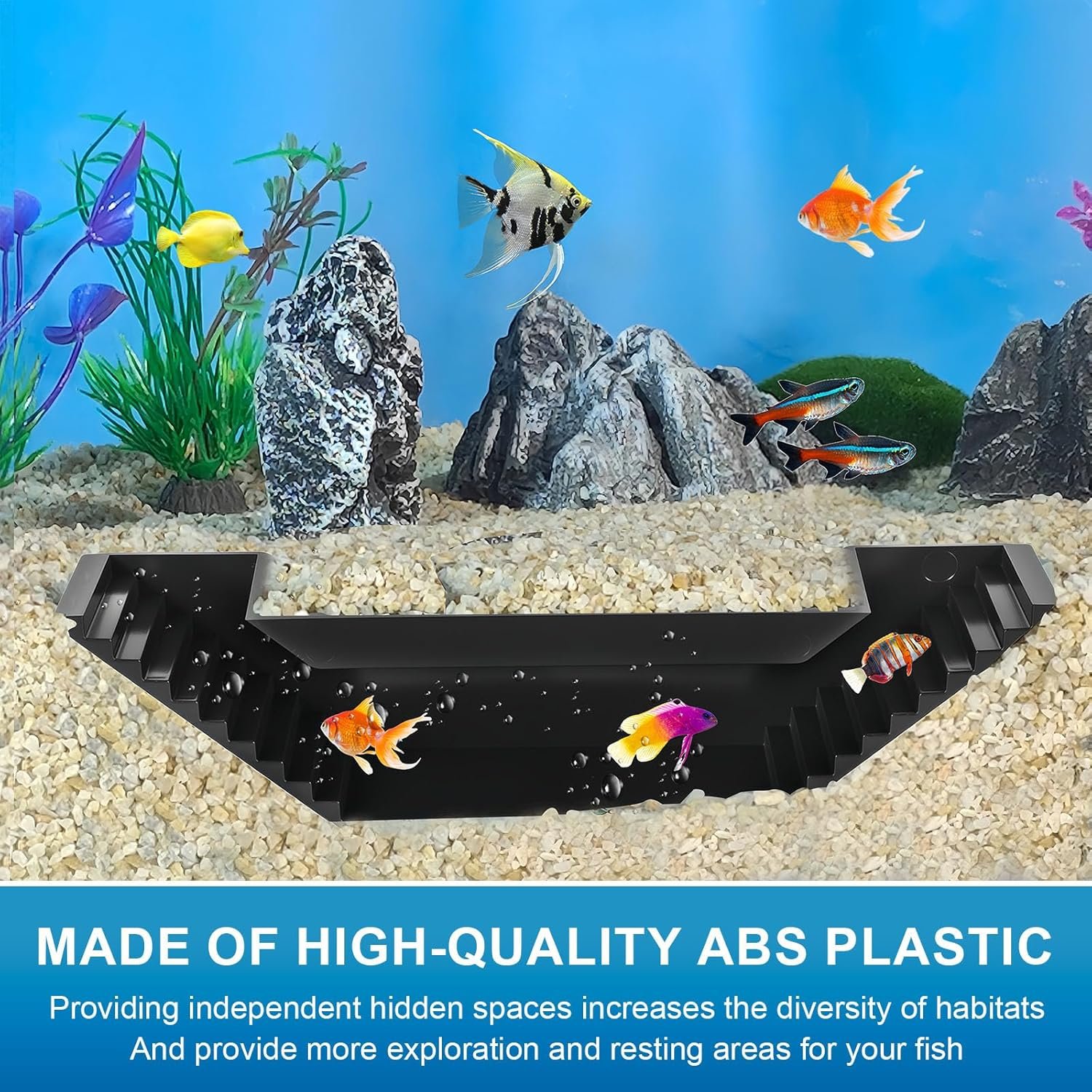 Sicheres, hypoallergenes Material: Das Höhlenaquarium besteht aus strapazierfähigem ABS-Kunststoff. Die polierten Innenwände ohne scharfe Kanten sorgen für langfristige Haltbarkeit und Sicherheit in allen Aquarienumgebungen.