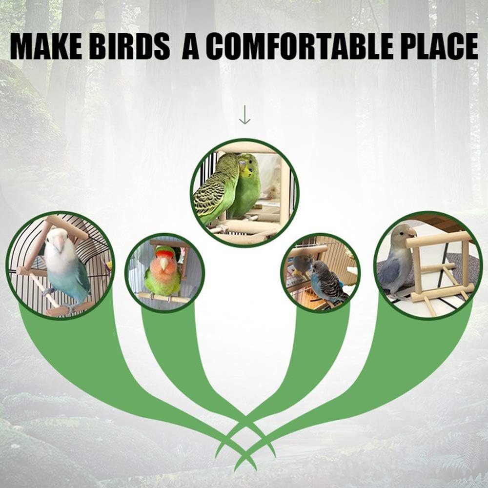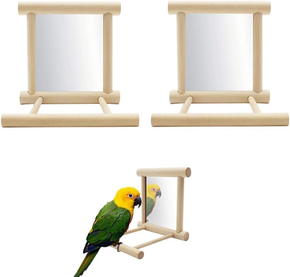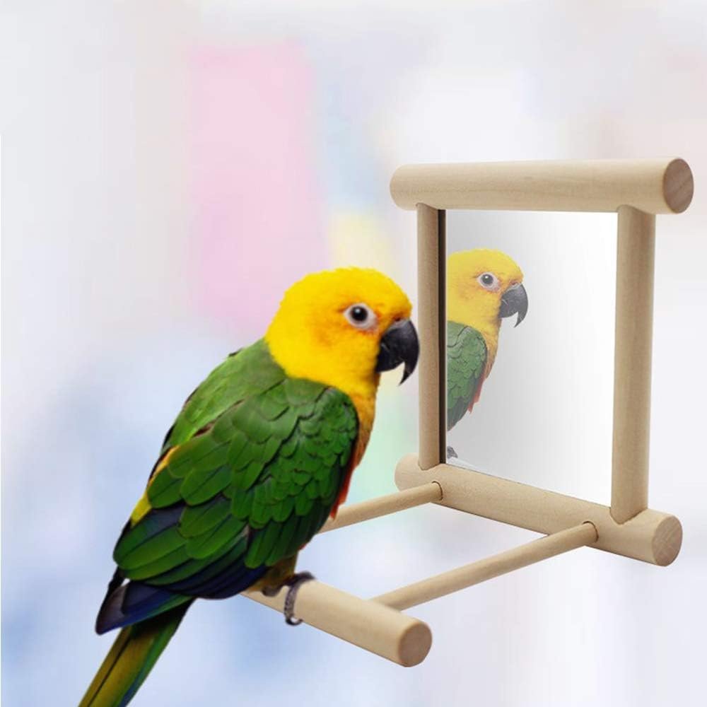 Hochwertiges Material: aus Holz und Spiegel, komplett handgefertigt, bissfest und langlebig. Es ist sicher für Vögel, seine robuste Konstruktion ist nicht leicht zu brechen und zu verformen.