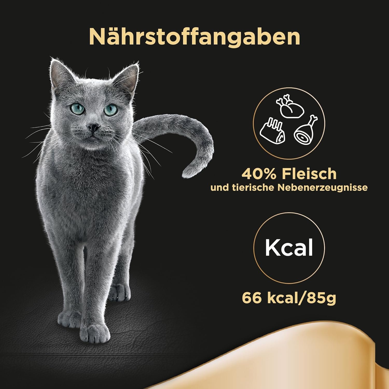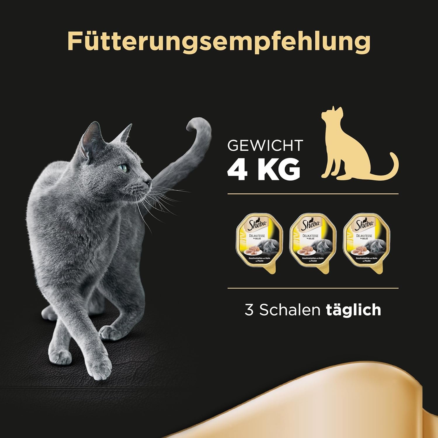 Jeden Tag ein Genuss mit dem vollwertigen Alleinfuttermittel – für eine 4 kg schwere Katze empfiehlt sich die Verzehrmenge von 3 Näpfen pro Tag / Wasser sollte erreichbar sein