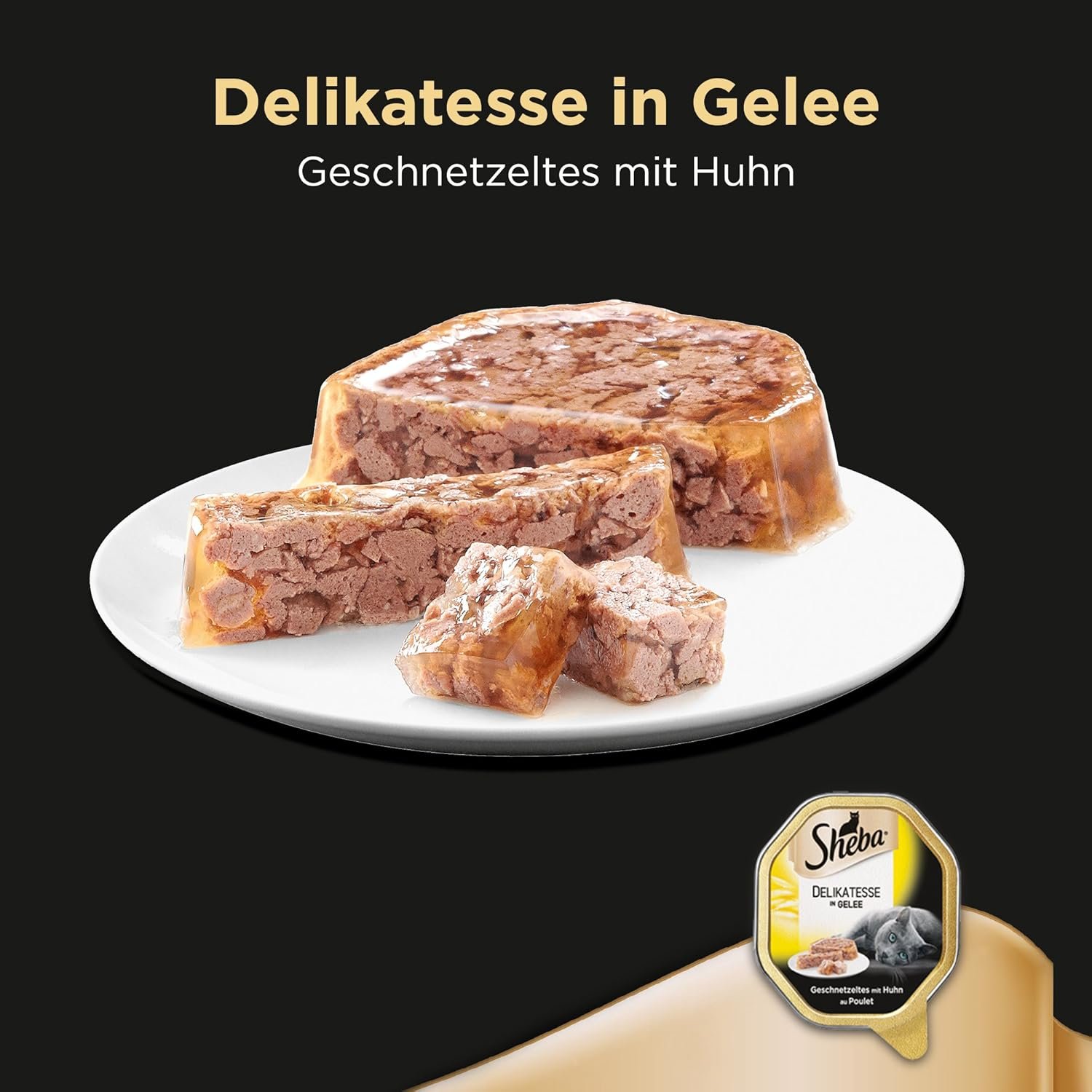 Lieferumfang: 22 x 85 g Sheba-Köstlichkeit in Gelee, Vorratspackung, geschnitten mit Huhn, Tiernahrung für Hauskatzen, geeignet für Junior ab 12 Monaten bis Senior