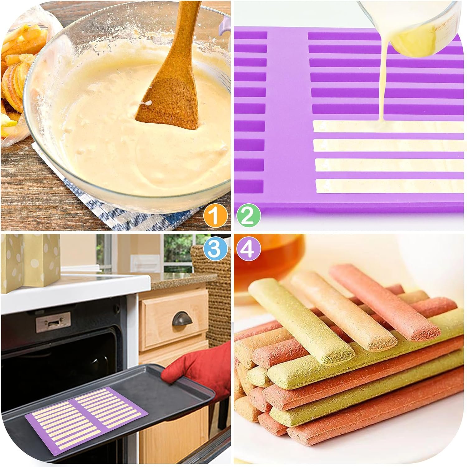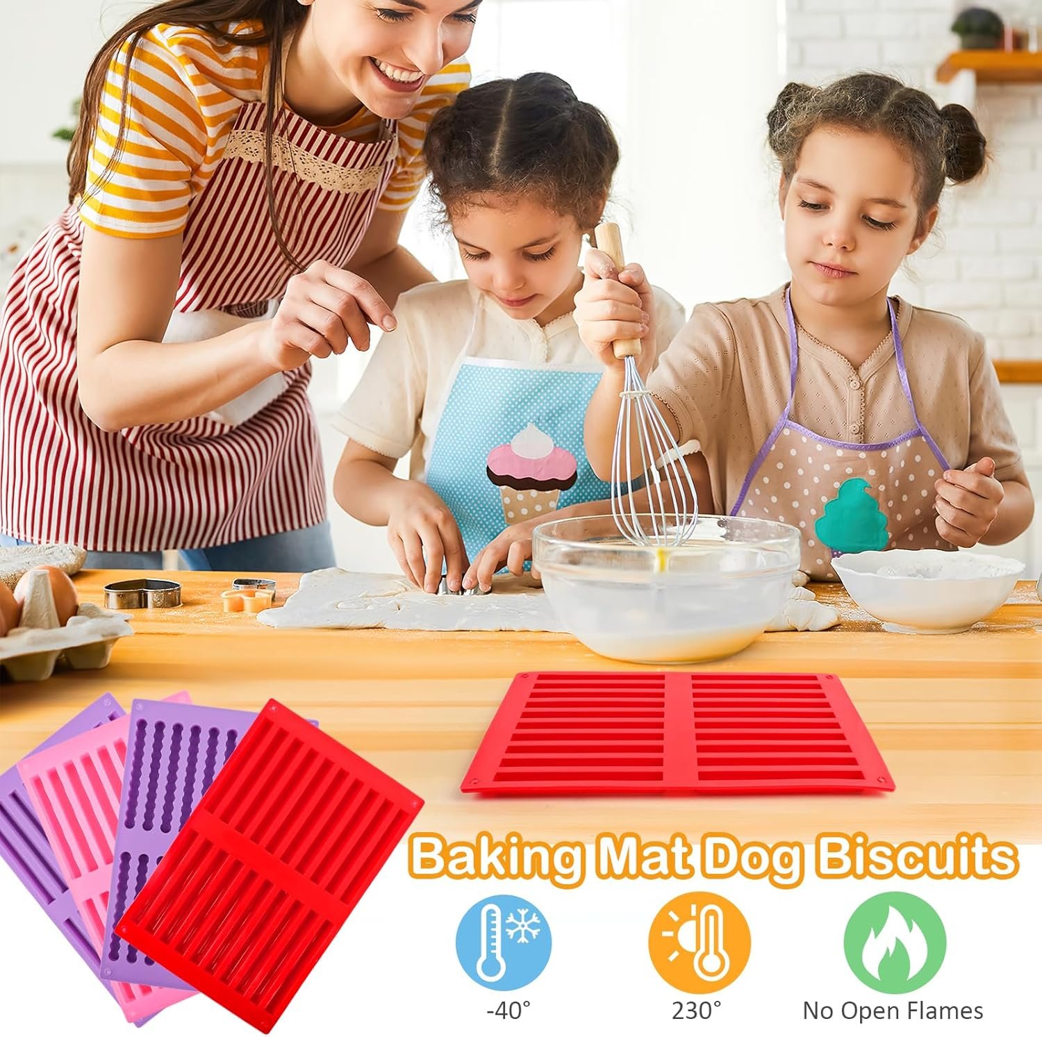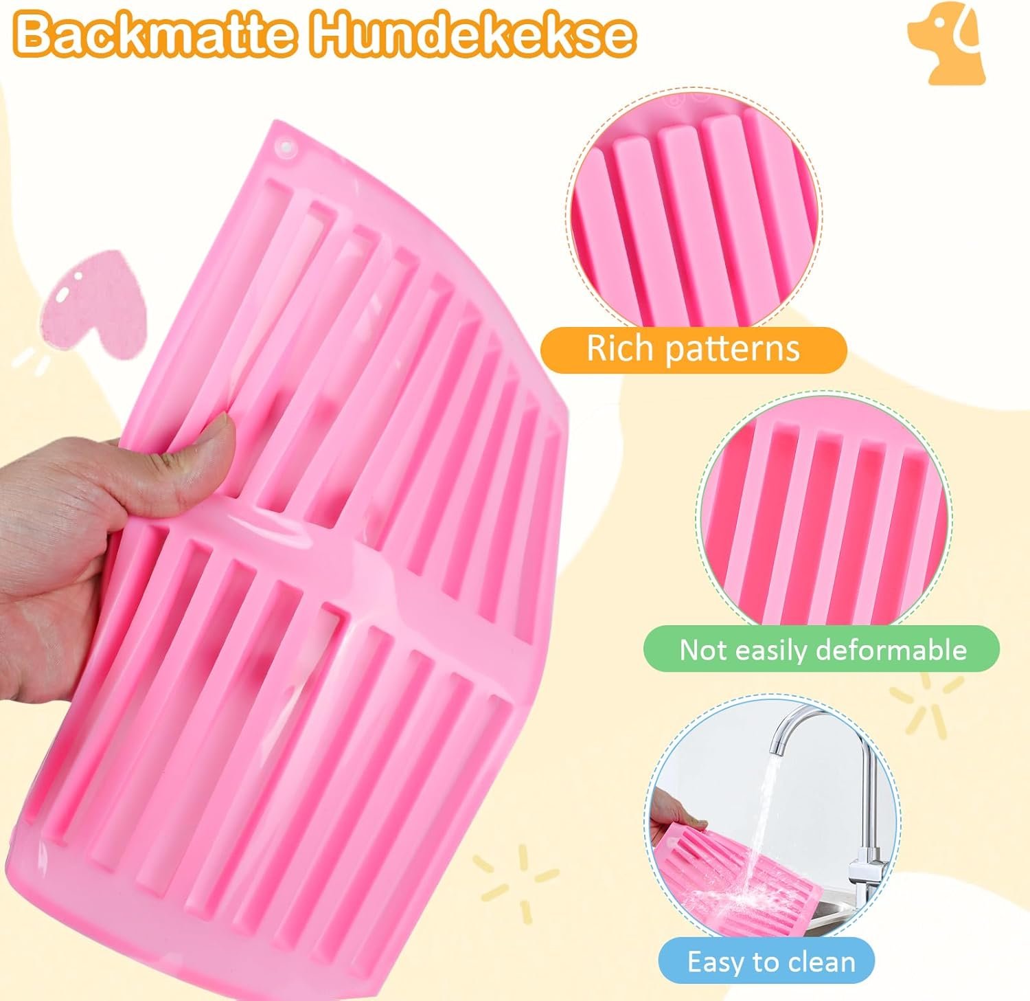 Hundekekse mit Backmatte – Entdecken Sie die ultimativen Hundekekse mit Backmatte für selbstgemachte Leckereien! Dieses 4-teilige Backmatten-Hundekeksset enthält vier verschiedene Formen (Quadrat, Wellenform, Zylinder, Dreieck) inklusive Schaber und Backpinsel – perfekt für die Zubereitung gesunder Snacks und Kauspielzeuge.