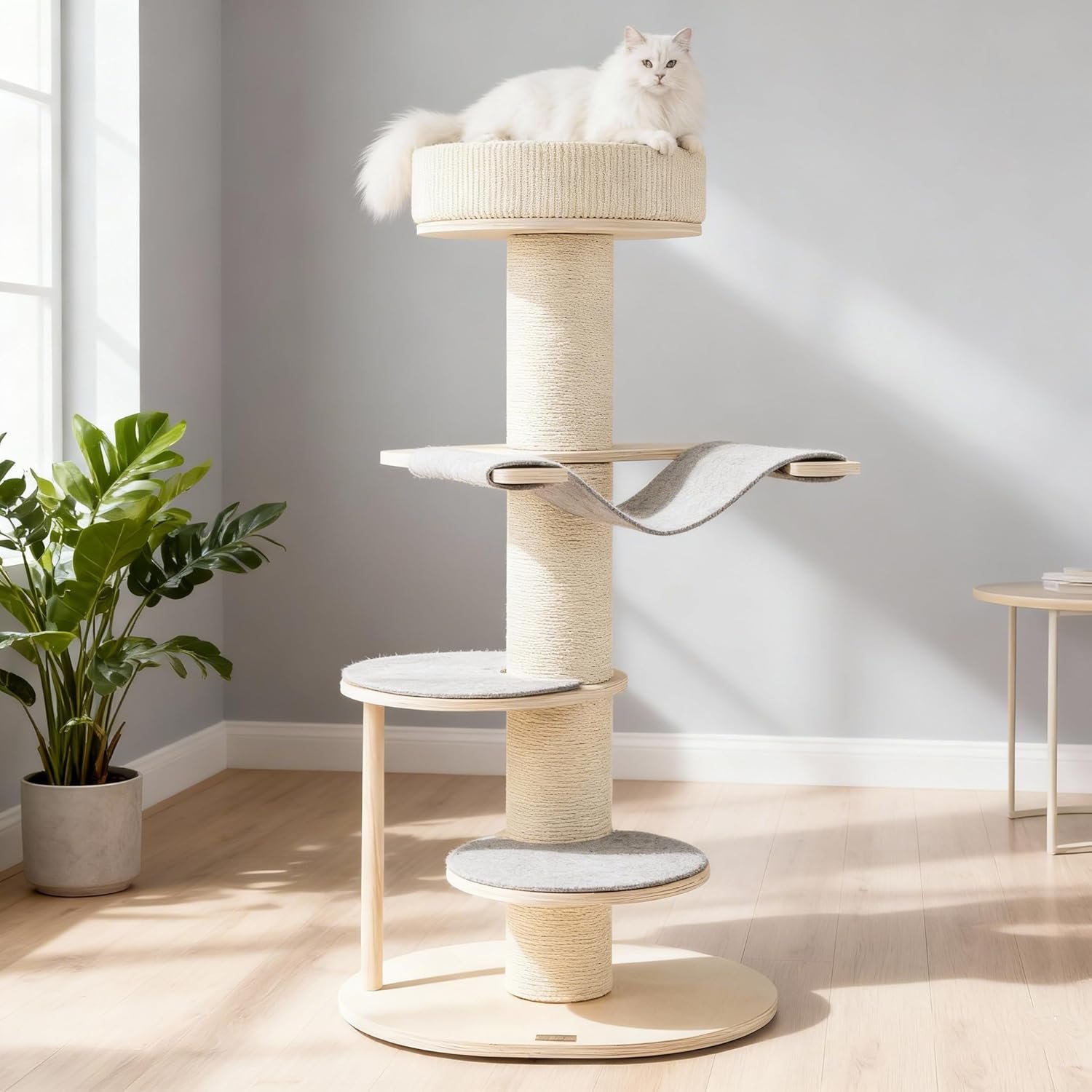 Der Multifunktionssitz mit Sisalteppich unterstützt die Gesundheit der Katzenkrallen.