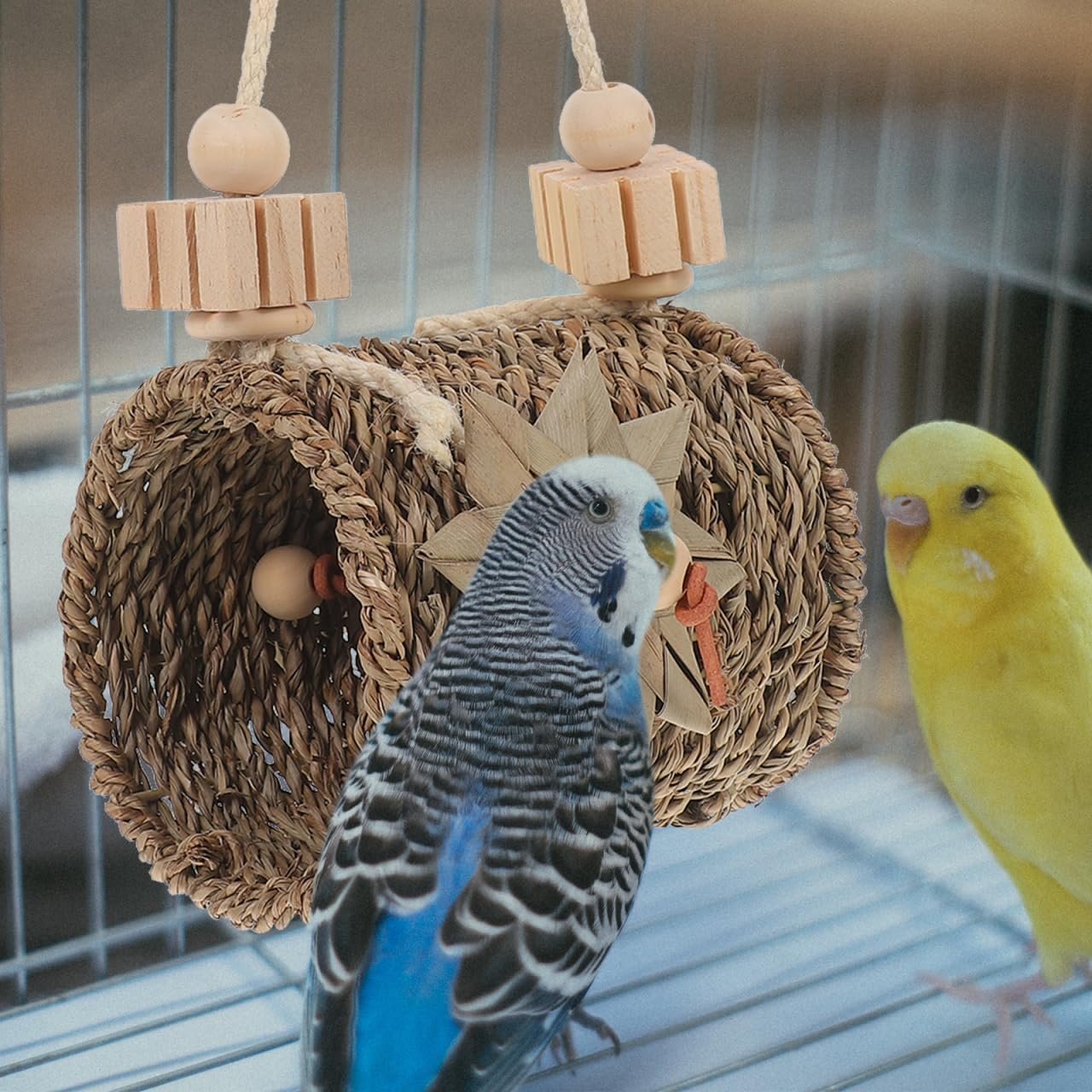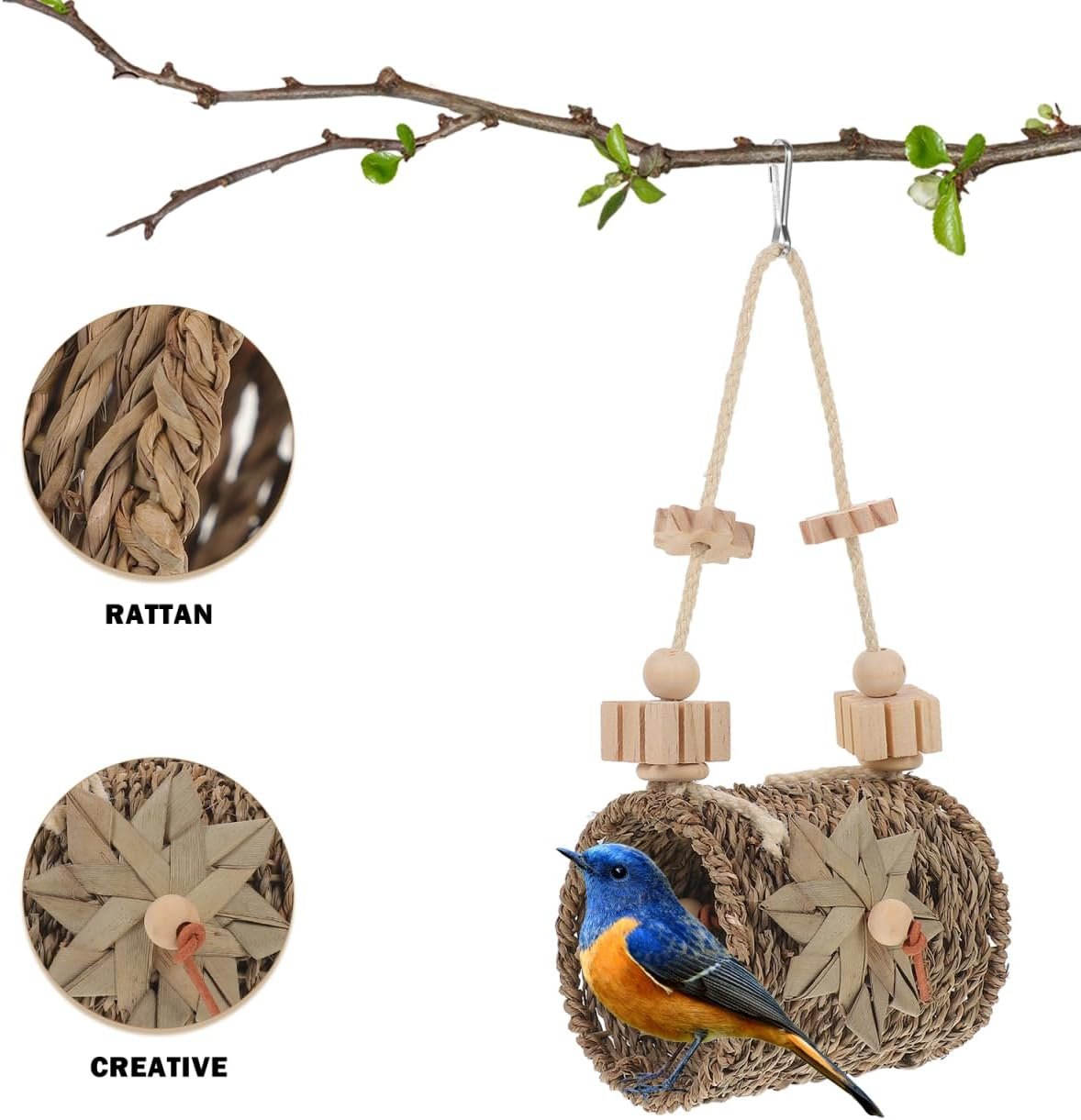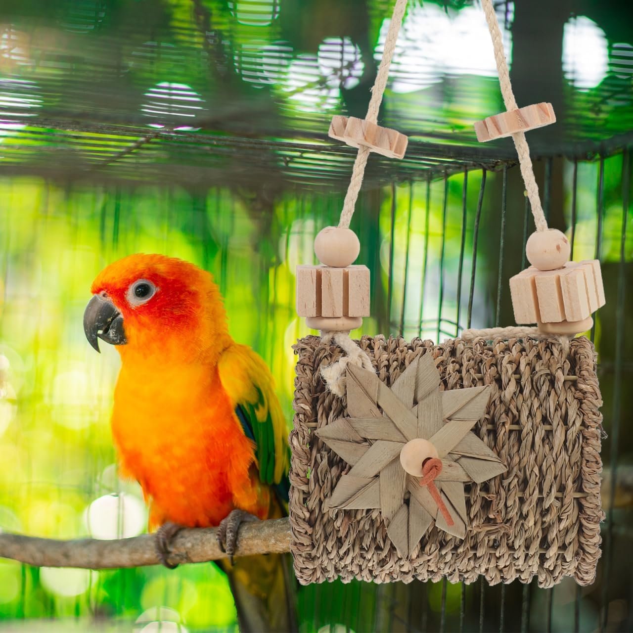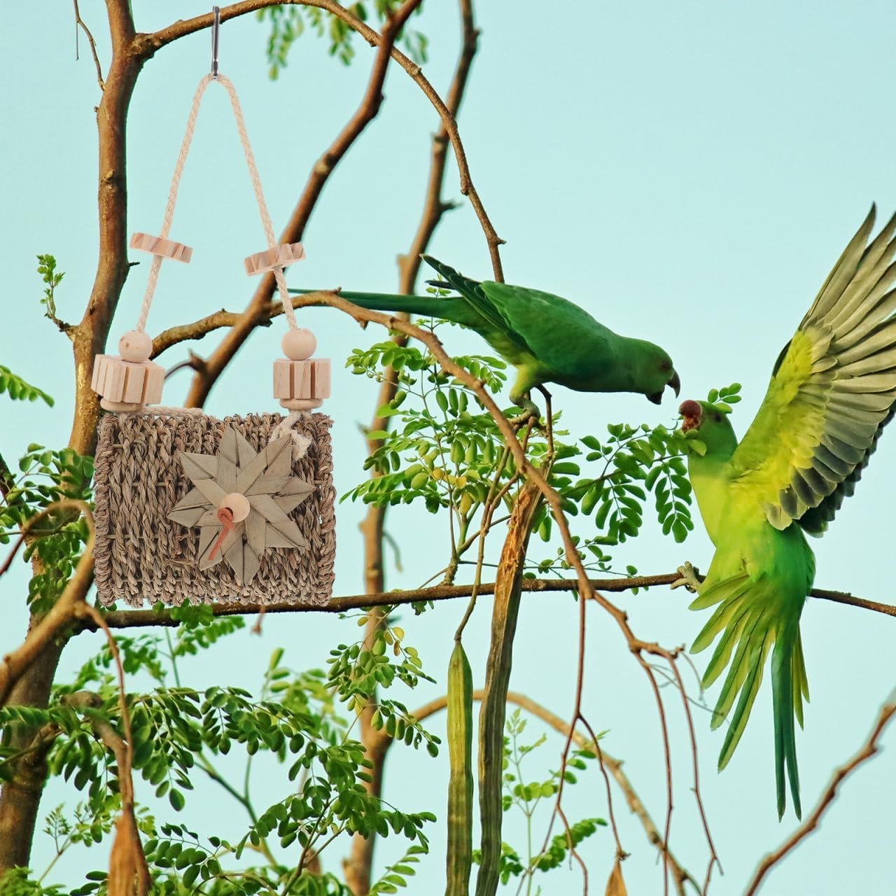 – Hergestellt aus leichtem Rattan- und Holzmaterial mit guter Verarbeitung, Futterspielzeug für Sittiche.