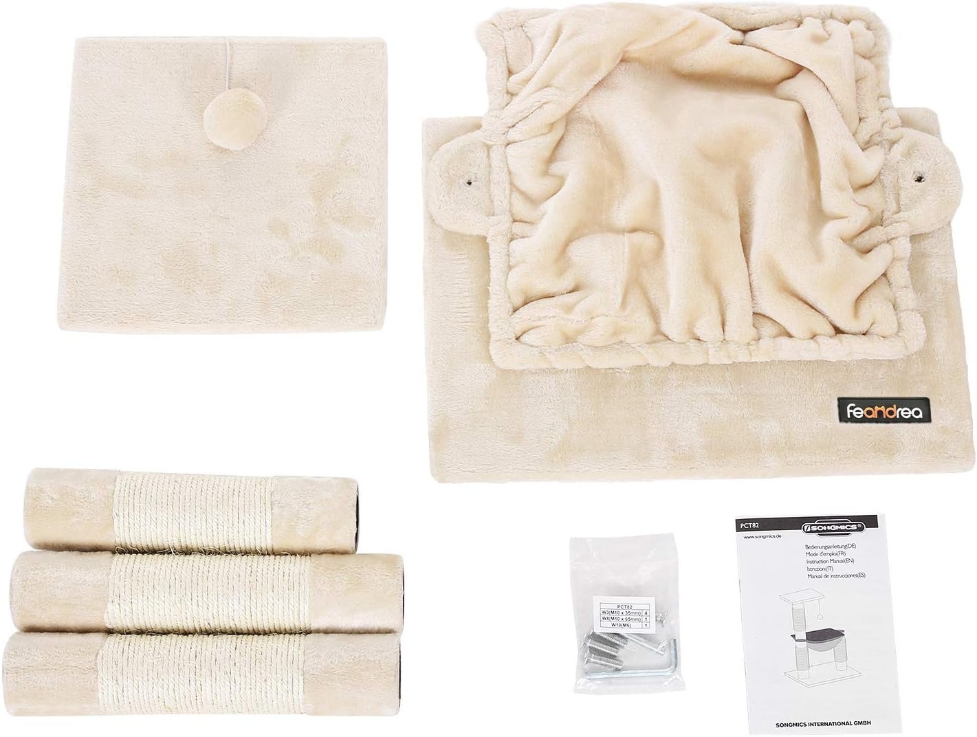 Einfache Montage: Der Baum ist einfach zu montieren. Die Werkzeuge sowie eine verständliche Anleitung sind im Lieferumfang enthalten (evtl. nicht in deutscher Sprache). Nach dem Aufbau sieht der Kratzbaum als Dekoration wunderschön aus.
