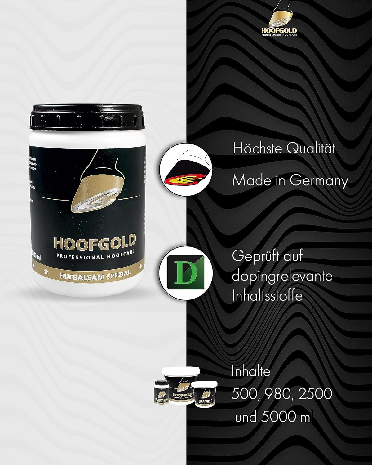 Unsere Hauptaufgabe besteht darin, gesunde und starke Hufe bei Pferden zu fördern und das Wohlbefinden der Pferde zu verbessern. Aus diesem Grund haben wir die HOOFGOLD Pflegeserie entwickelt.