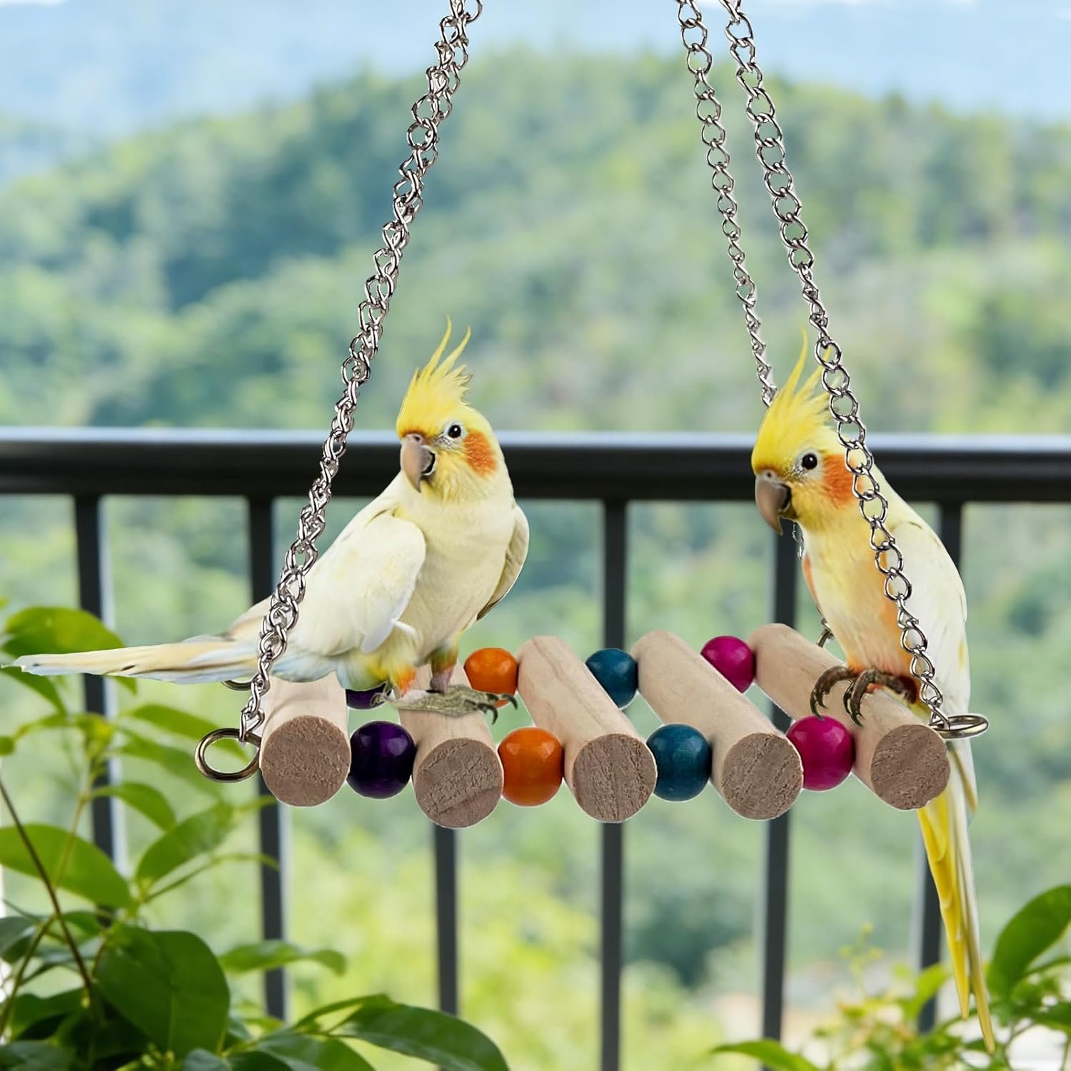Handgefertigtes Vogelspielzeug: 100 % handgefertigtes Vogelspielzeug, sehr sicher in der Anwendung, bietet einen unterhaltsamen Ort zum Klettern, bietet Ihren Vögeln Übungsmöglichkeiten und verbessert ihr Gleichgewicht. Geeignet für Nymphensittiche, Wellensittiche, Sittiche, Aras, Papageien und Liebesvögel, Mynah, Finken und andere kleine bis mittelgroße Ziervögel.