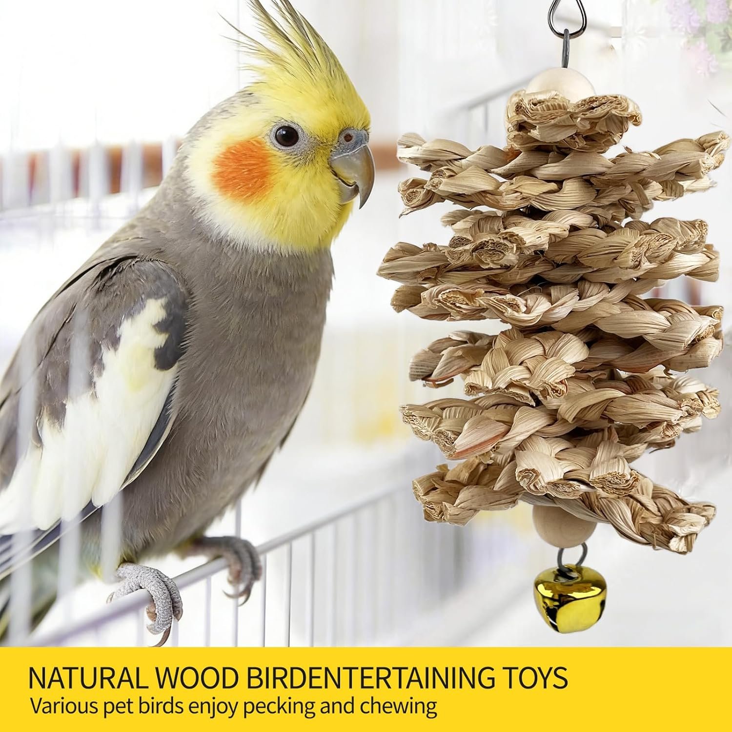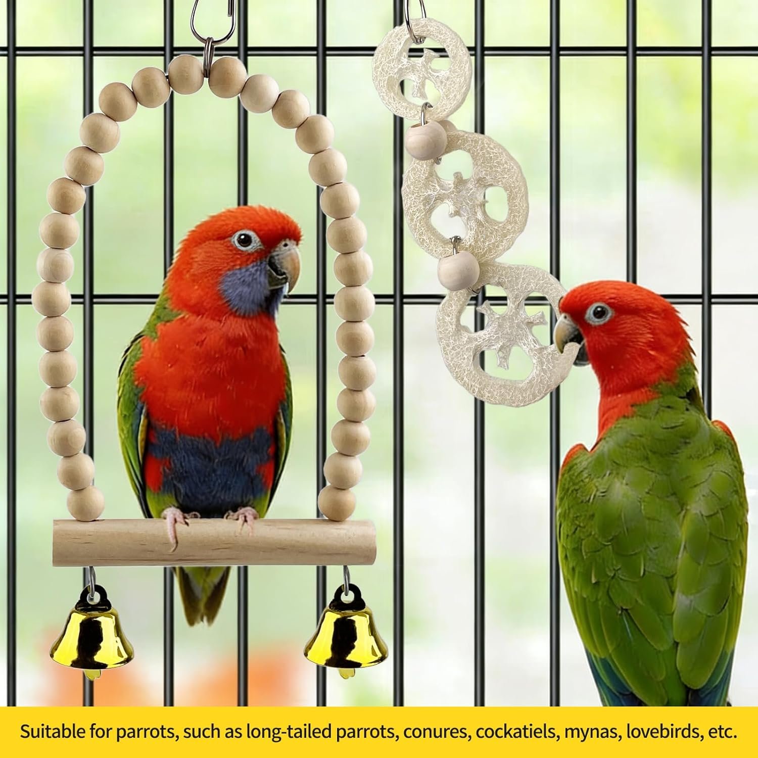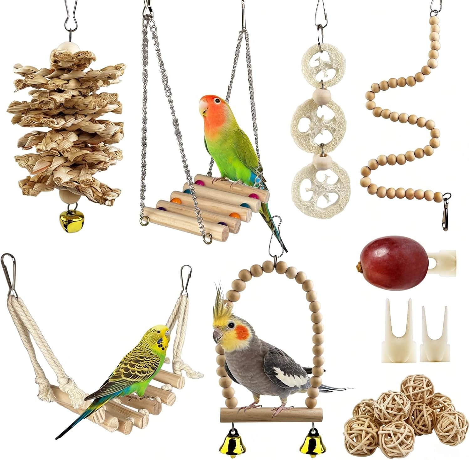 Einfache Installation und Verwendung: Alle Vogelkäfig-Spielzeuge verfügen über einen beweglichen Haken, der einfach am Rand der Käfig befestigt werden kann.