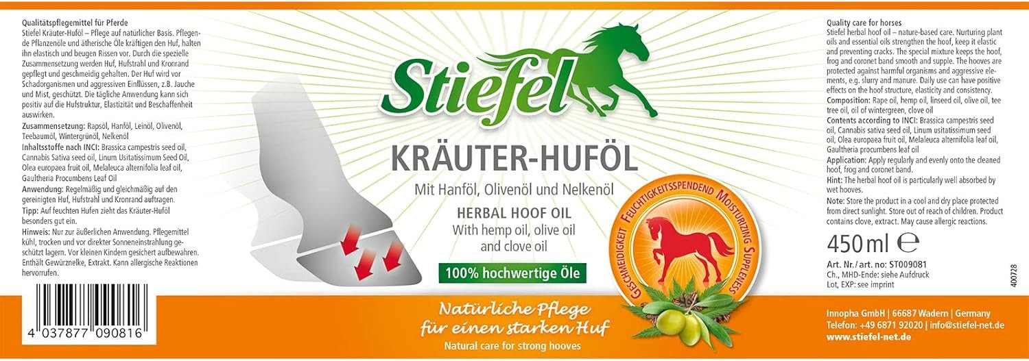 100 % hochwertige Öle. Hufpflege auf natürlicher Basis. Schutz vor Schadorganismen und aggressiven Einflüssen.