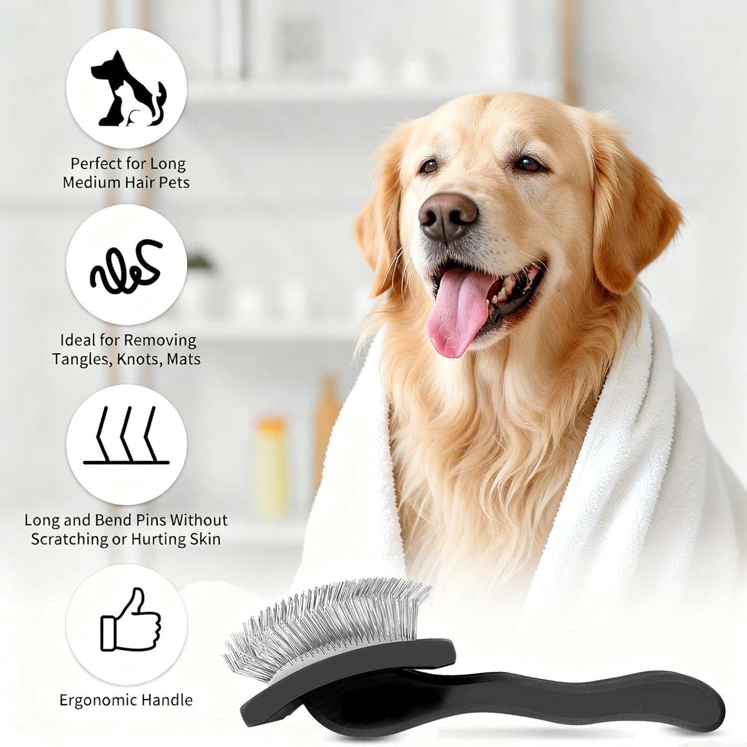 Für alle Fellarten geeignet – Diese Bürste eignet sich nicht nur für langhaarige Hunde, sondern auch für Katzen und Tiere mit mittlerem oder lockigem Fell. Perfekt für Cockapoo, Pudel, Langhaarkatzen und andere Haustiere, sorgt es für ein glänzendes, gesundes Fell.