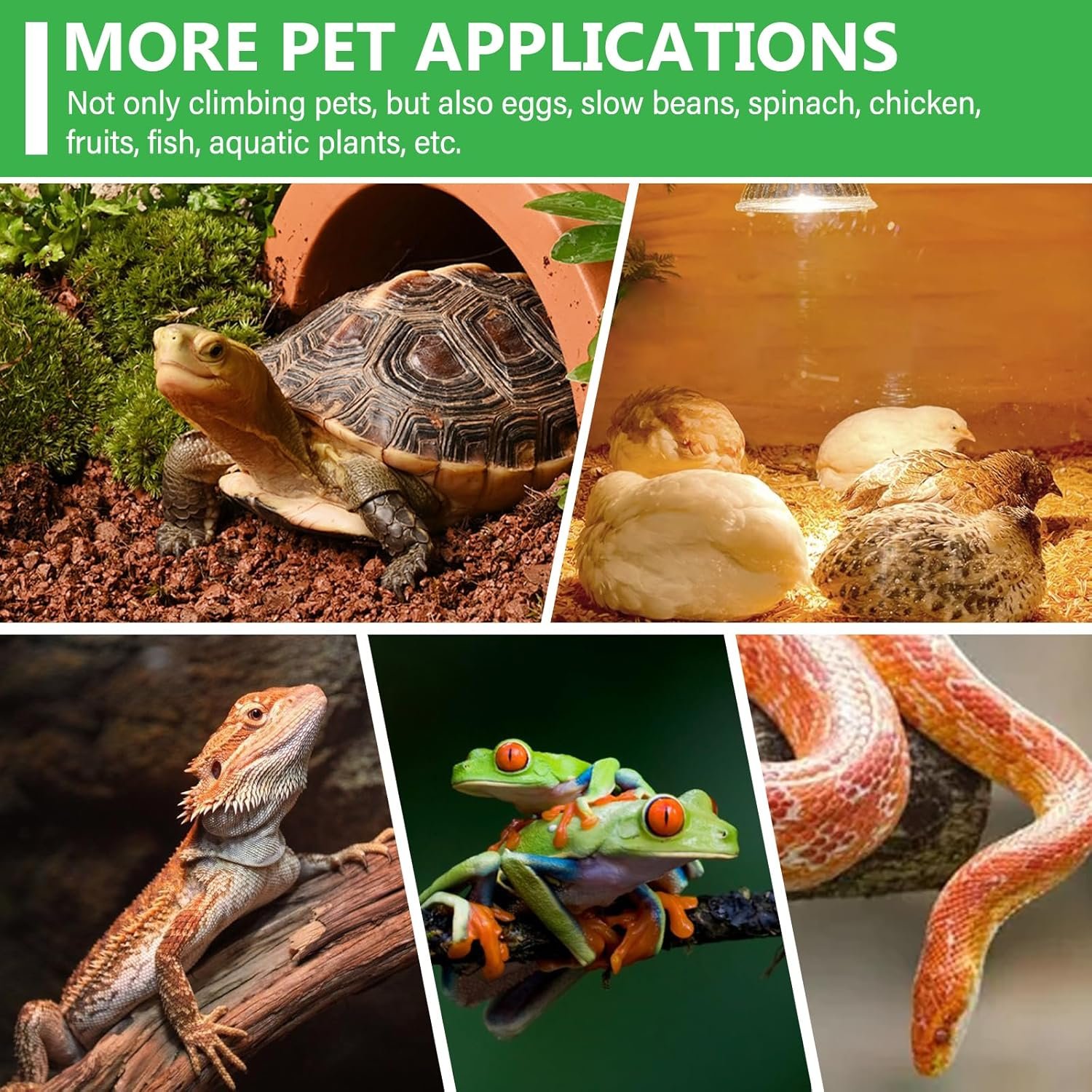 Geeignet für: Reptilien, Amphibien, Terrarien, Aquaterrarien.