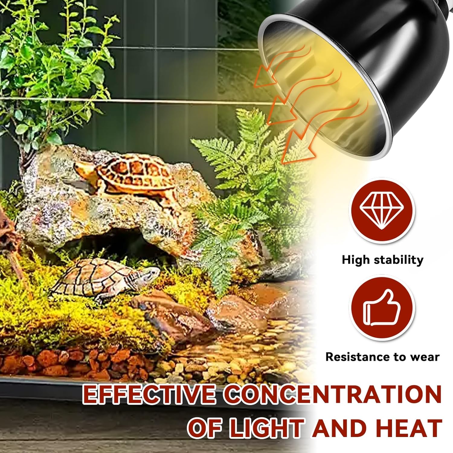 Vielseitig: Reptilien Wärmelampe eignet sich für eine Vielzahl von Haustieren, darunter Landschildkröten, Wasserschildkröten, Geckos und Eidechsen. Diese Leuchte kann in Kombination mit einer energieeffizienten UVB-Lampe für Reptilien, einer UVB-Sonnenlampe, einem Keramikheizer oder einer Nachtwärmelampe in einem Terrarium verwendet werden, um die Bedürfnisse aller Ihrer Tiere optimal zu erfüllen.