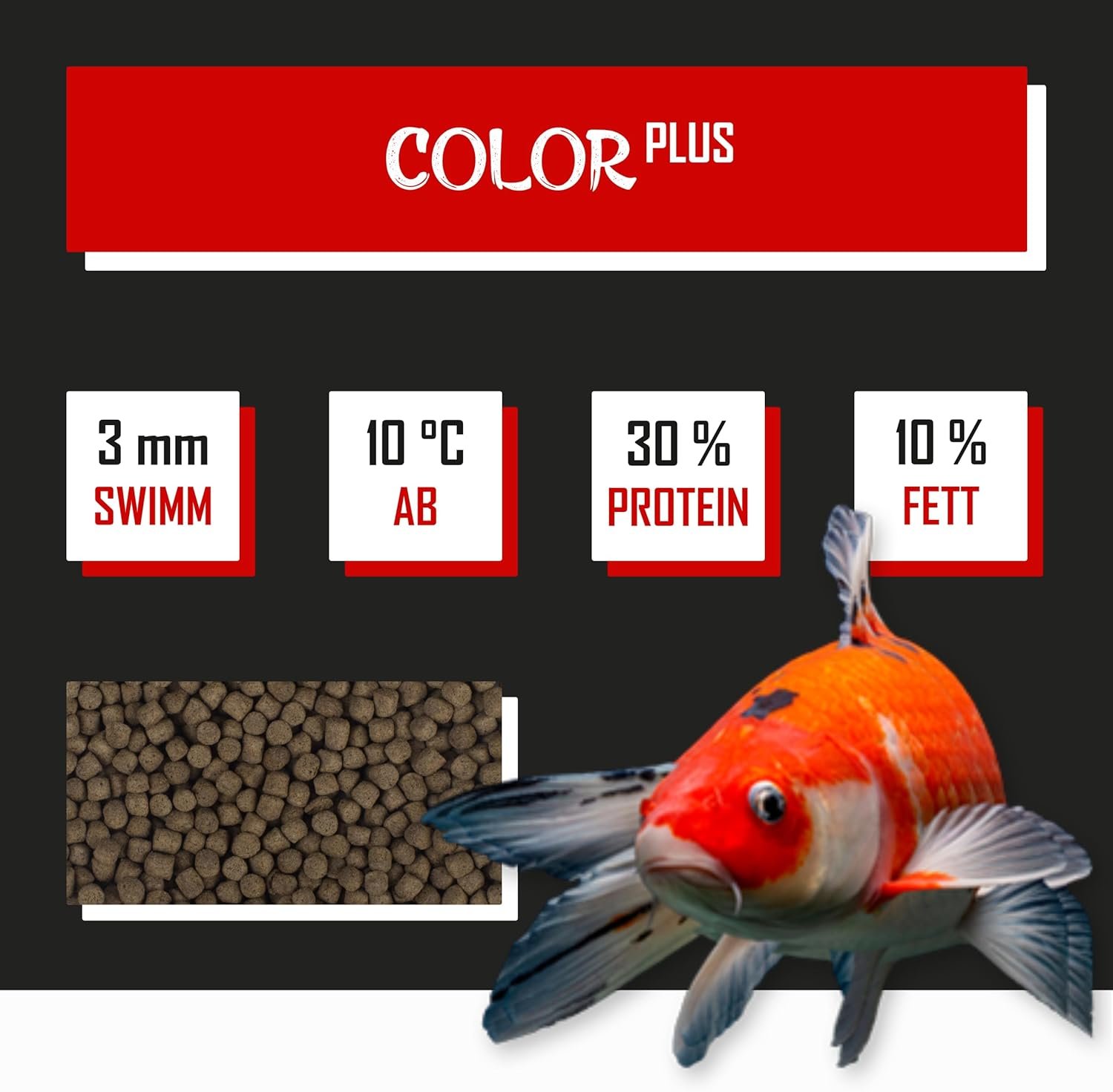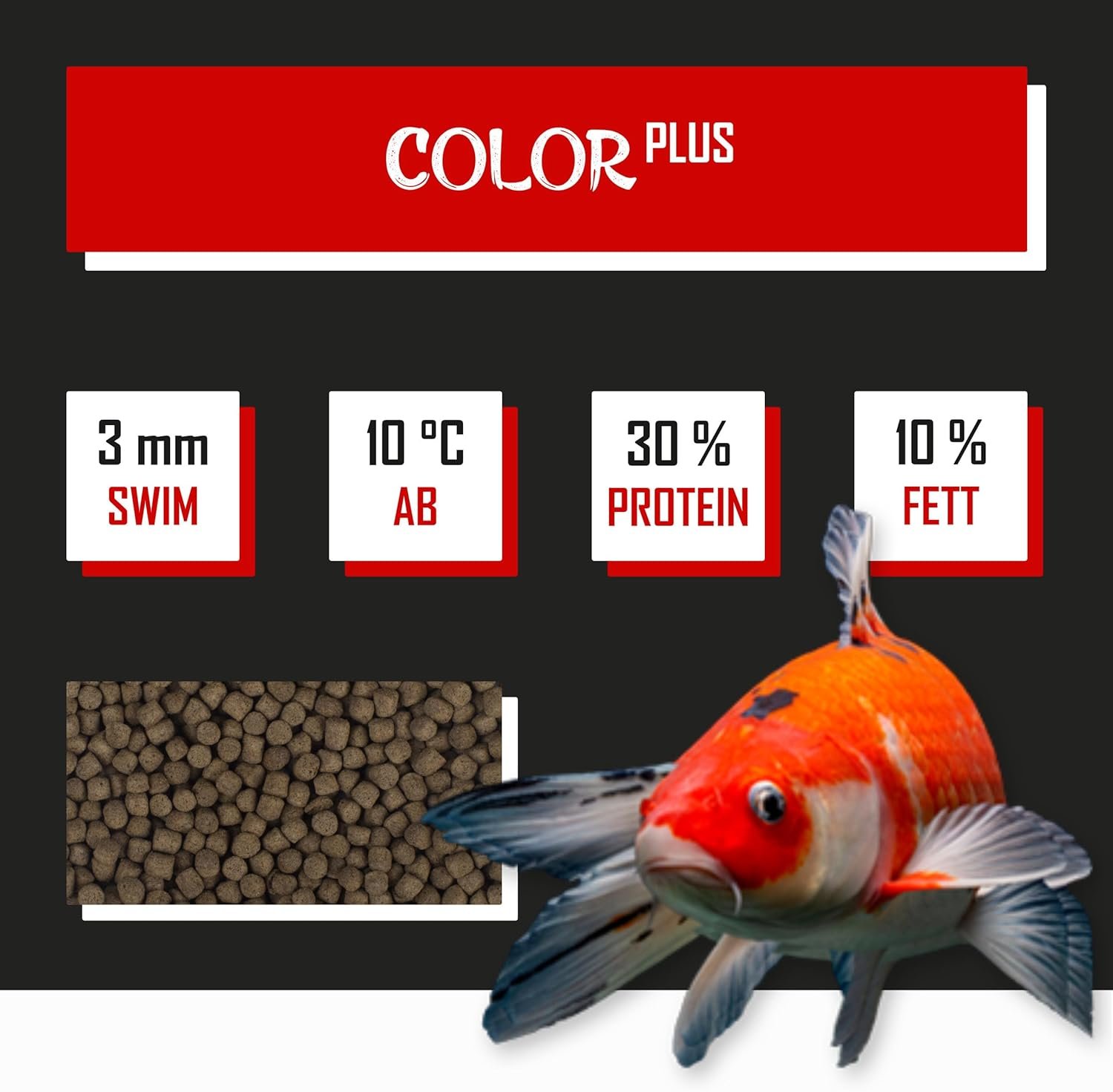 Abgestimmte Futterzusammensetzung: Aufeinander abgestimmte Koi-Futterzusammensetzung für optimale Farbentwicklung dank ausgewogenem Mikro- und Makronährstoffgehalt