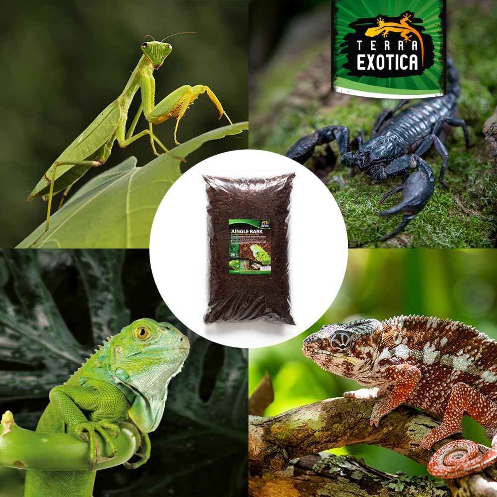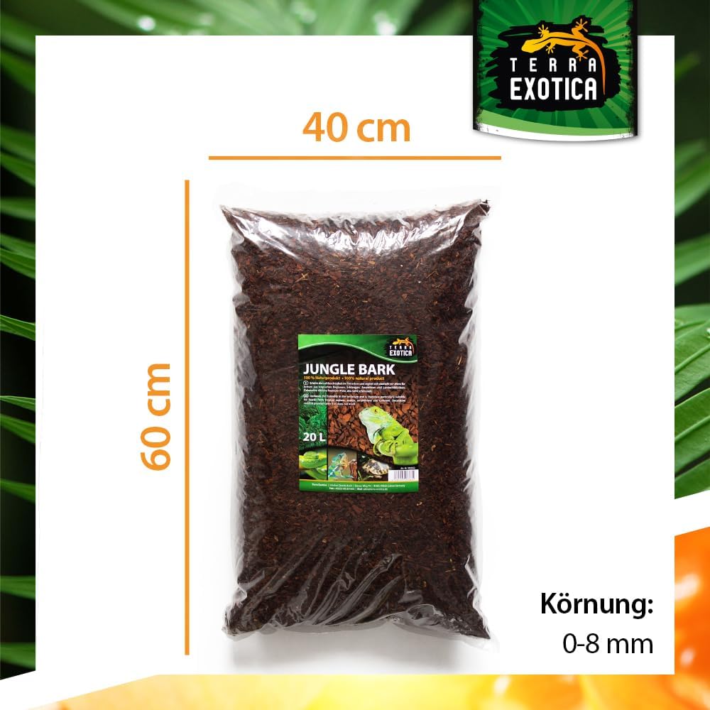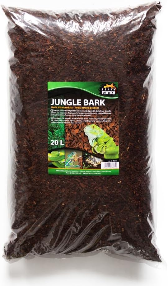 Terra Exotica Jungle Bark ist die ideale Wahl für Ihr Terrarium, insbesondere wenn Sie tropische Eidechsen halten. Dieses natürliche Bodensubstrat aus rötlicher Kiefernrinde erhöht die Luftfeuchtigkeit in Ihrem Terrarium und schafft so ein optimales Mikroklima für Ihre exotischen Reptilien. Die feuchtigkeitsspeichernde Eigenschaft der Dschungelrinde sorgt für eine konstant hohe Luftfeuchtigkeit, die dem natürlichen Lebensraum tropischer Eidechsen nachempfunden ist. Dies unterstützt nicht nur das Wohlbefinden Ihrer Tiere, sondern fördert auch ein gesundes Wachstum und natürliches Verhalten. Mit Terra Exotica Jungle Bark verwandeln Sie Ihr Terrarium in ein Stück Regenwald und bieten Ihren tropischen Eidechsen ein authentisches und artgerechtes Zuhause.