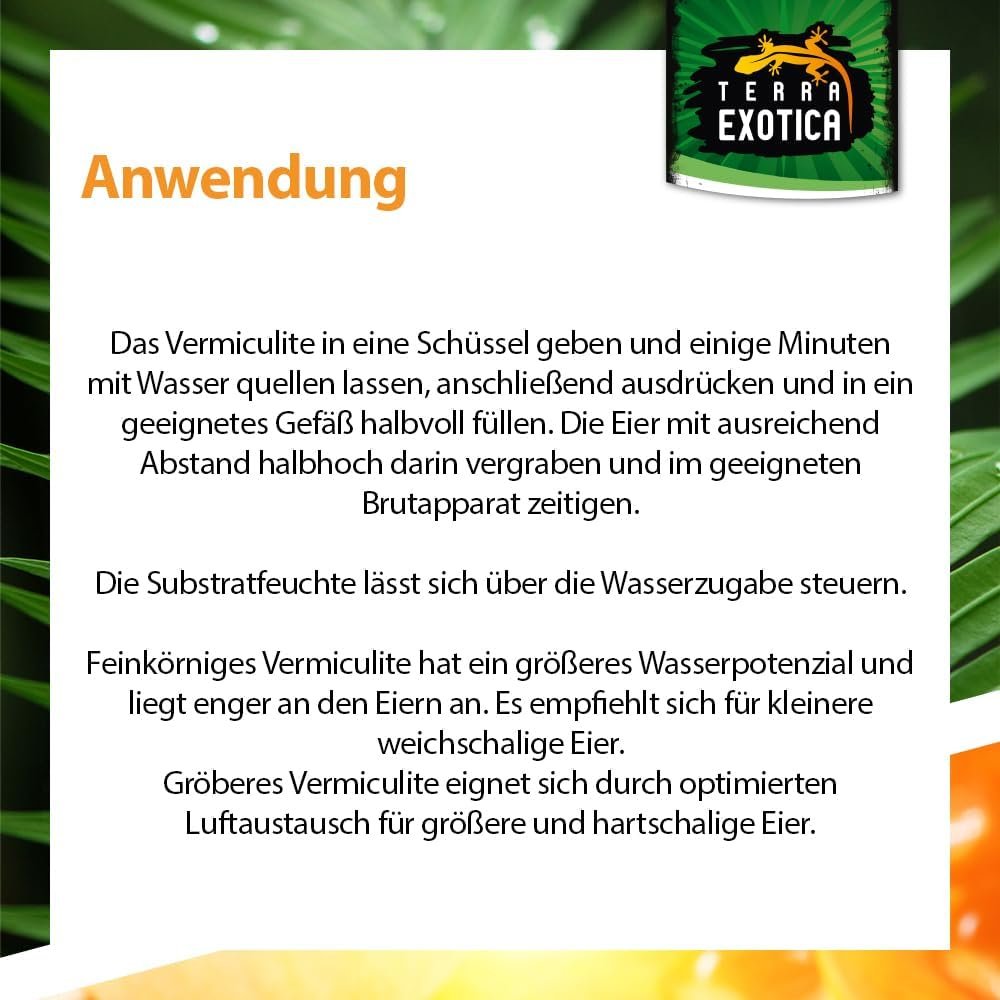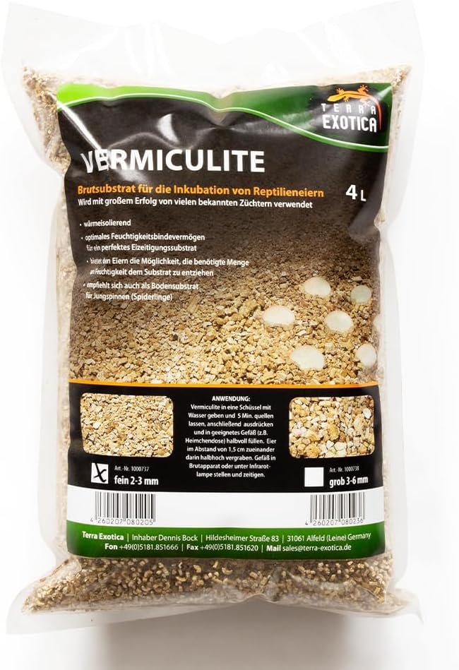 Reptilien wie Echsen und Schlangen legen ihre Eier normalerweise in einem Substrat ab, das die Feuchtigkeit speichert und eine geeignete Umgebung für die Entwicklung der Embryonen bietet. Vermiculite erfüllt diese Anforderungen perfekt, da es eine hohe Wasseraufnahmefähigkeit hat und gleichzeitig gut belüftet ist. Dies ermöglicht es den Eiern, die richtige Menge an Feuchtigkeit zu absorbieren, ohne dass sie durch Schimmel oder Fäulnis beschädigt werden.