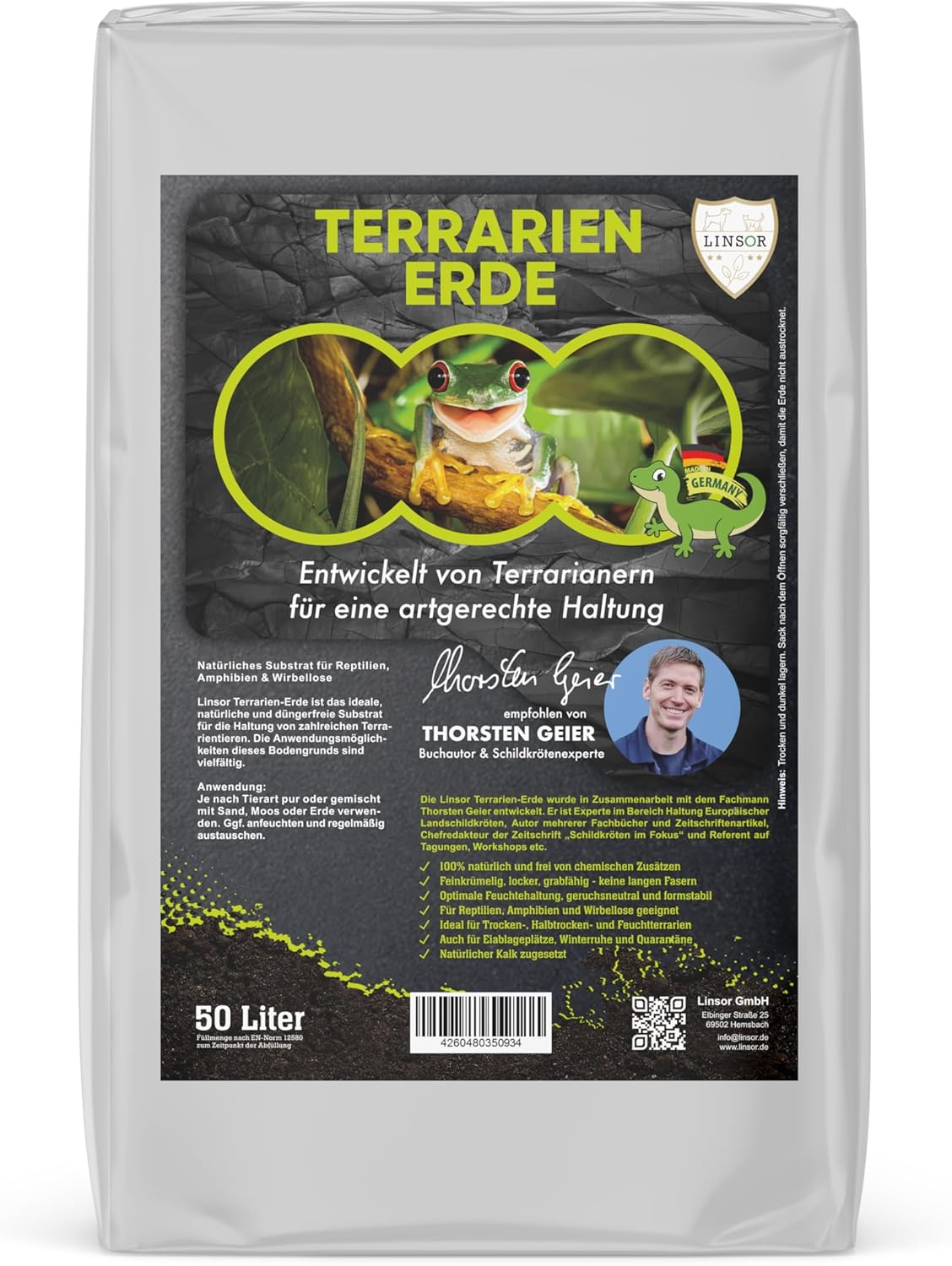 Die Linsor Terrarienerde ist ein natürlicher, feinkrümeliger Bodengrund, der speziell für die Haltung von Reptilien, Amphibien und Wirbellosen entwickelt wurde. Es enthält keine Düngemittel oder chemischen Zusätze und ist daher sowohl für empfindliche Arten als auch für Jungtiere unbedenklich. Dank der feinen, grabbaren Struktur ist das Substrat ideal für Tiere mit natürlichem Wühl- bzw. Wühlverhalten – egal ob Bartagamen, Leopardgecko, Landschildkröten, Königspythons, Axolotl-Zuchtbox (trocken), Vogelspinne oder Insektenkolonie. Der Boden speichert die Feuchtigkeit, bleibt aber luftdurchlässig und keimtolerant – so wird die Schimmelbildung reduziert und ein stabiles Mikroklima aufgebaut. Ob als Substrat, zur Eiablage, als Mulchschicht in halbtrockenen Gebieten oder in Kombination mit Sand/Ton: Dieses Substrat lässt sich flexibel anpassen und sorgt für natürliche Haltungsbedingungen. In der EU produziert, streng kontrolliert und in 50-Liter-Einheiten abgefüllt – perfekt für Terrarien, Innengehege & Tierhaltung mit hohem Bodenanspruch.