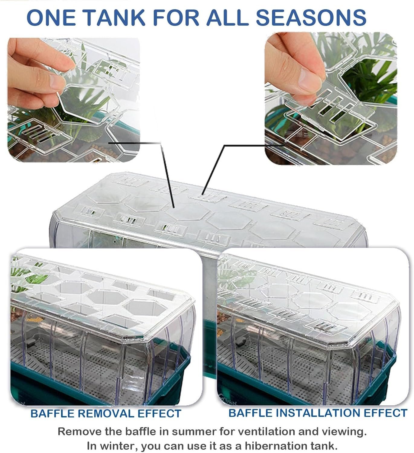 TRANSPARENTES, ABNEHMBARES DECKELDESIGN Der transparente Deckel des Schildkrötenaquariums sorgt nicht nur für eine gute Lichtdurchlässigkeit, um sicherzustellen, dass Ihr Haustier ausreichend Licht genießen kann, sondern belüftet das Terrarium auch effektiv, um sicherzustellen, dass die Luft im Terrarium gut zirkuliert, sodass es für eine längere Verwendung geeignet ist.