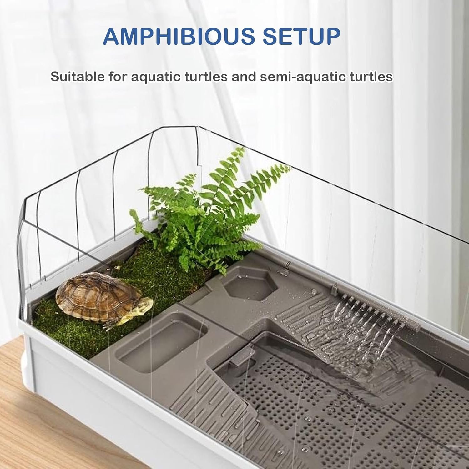 Natürlicher Lebensraum Der gut gestaltete Raum, der Wasser und Land miteinander verbindet, simuliert den natürlichen Lebensraum, sodass Ihr Haustier im Wasser schwimmen und an Land sonnenbaden, sich frei bewegen und gesund aufwachsen kann.