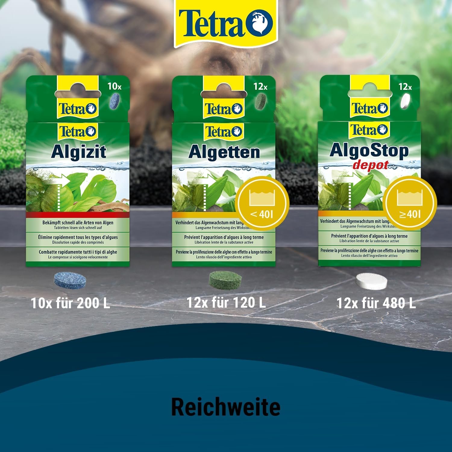 Mit den Tetra Anti-Algen-Produkten helfen Sie Ihrer Unterwasserwelt, schnell wieder in Ordnung zu kommen.