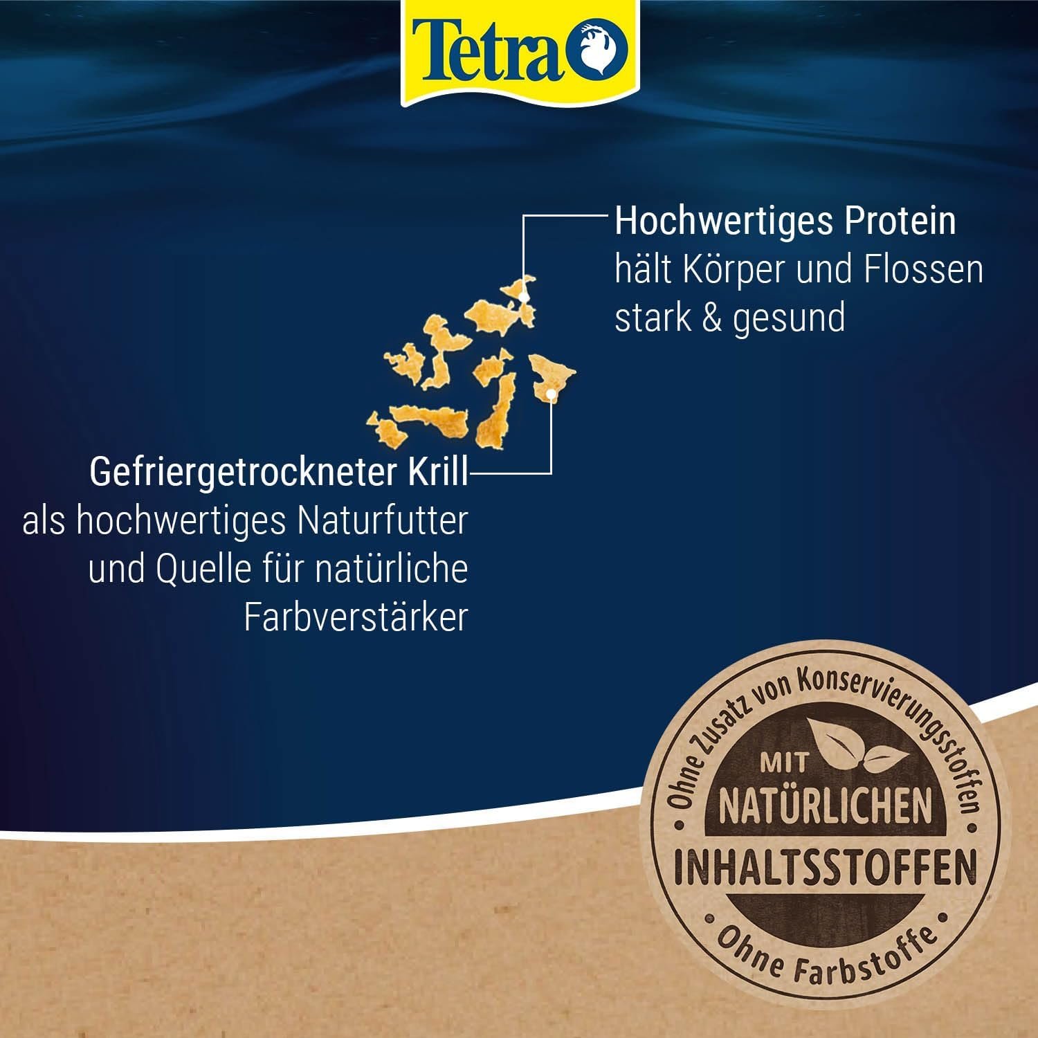 Künstliche Farbstoffe können das Wasser trüben. Tetra setzt auf natürliche Farbverstärker, wie z.B. Carotinoide aus Nori-Algen, Chlorella, Spirulina, Krill & Garnelen. Sie intensivieren die Färbung der Fische auf natürliche Weise.