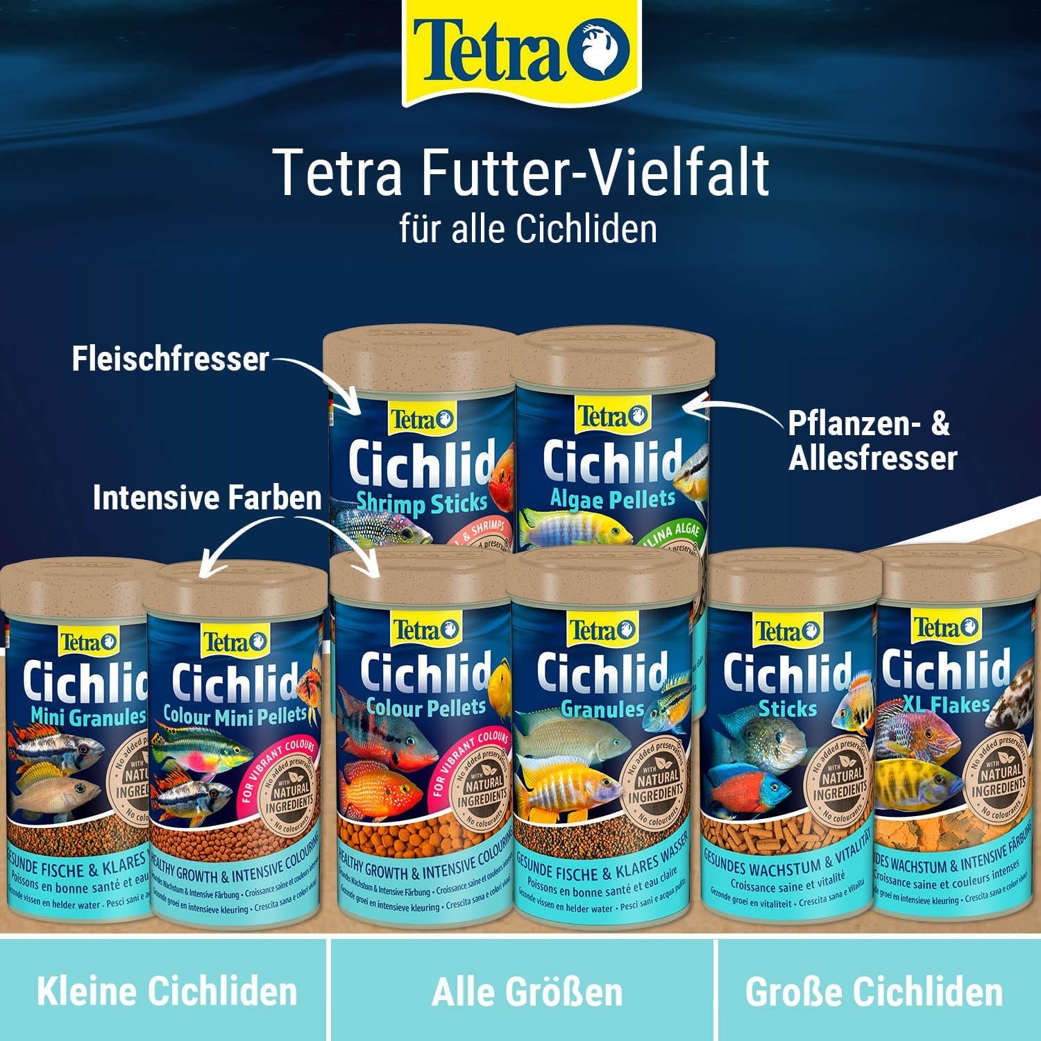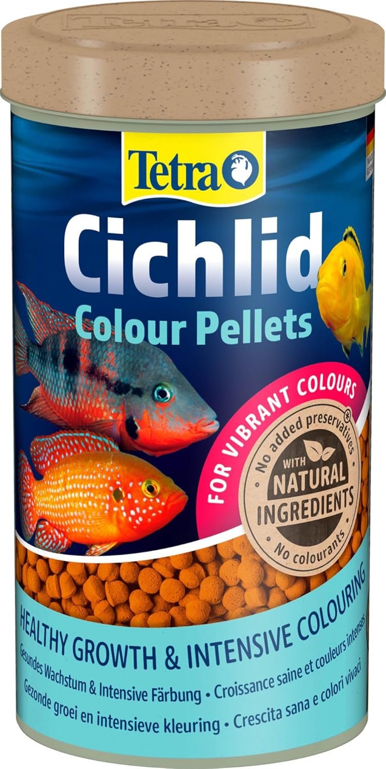 Die wiederverschließbare Dose aus recycelten Materialien schützt die Lebensmittel vor schädlichen Einflüssen wie Sonnenlicht, Luft und Feuchtigkeit – so bleiben die wichtigen Inhaltsstoffe geschützt; Lieferumfang: 1 x 500 ml Tetra Cichlid Color Pellets