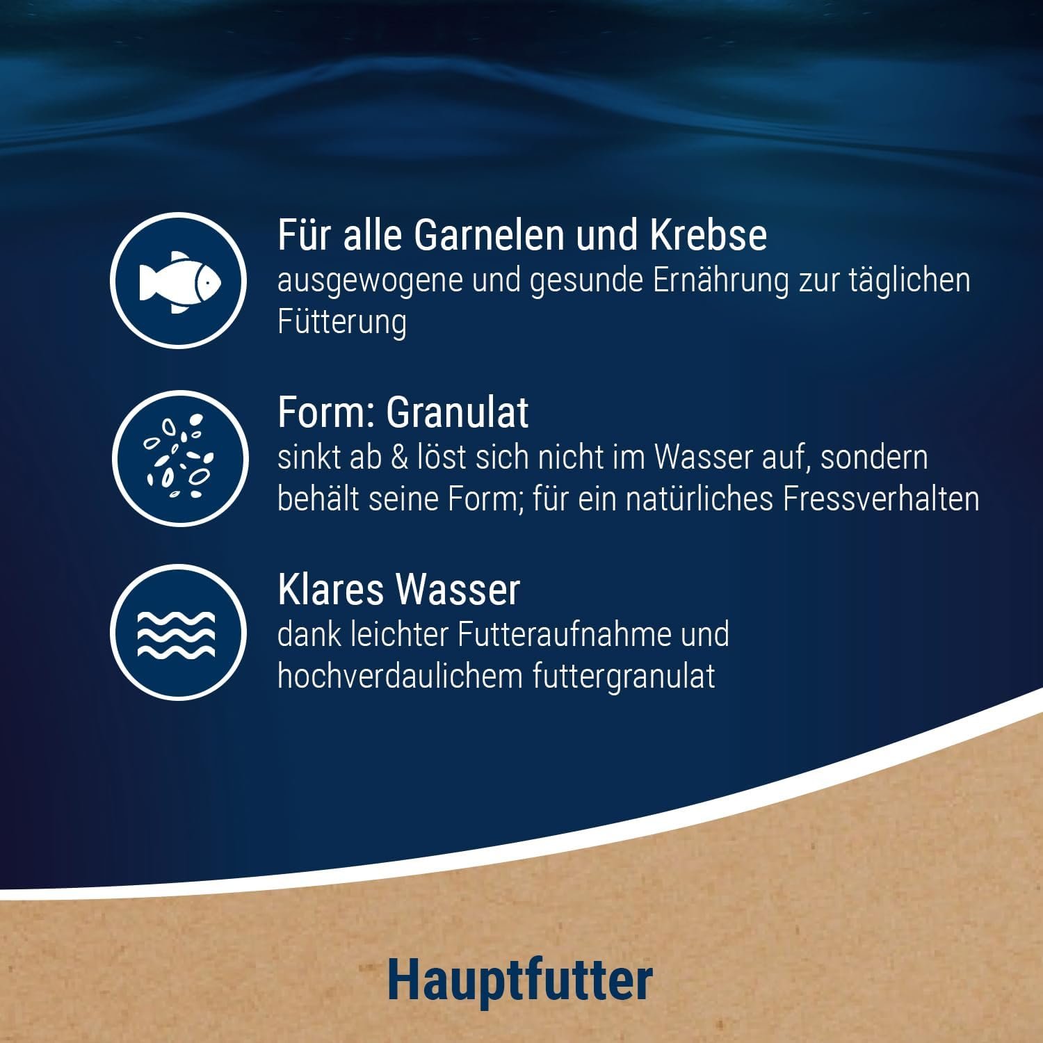 Das sinkende Granulat ist formstabil und löst sich nicht im Wasser auf, dies ermöglicht ein natürliches Fressverhalten. Durch die einfache Futteraufnahme und das hochverdauliche Futtergranulat bleibt das Wasser sauber