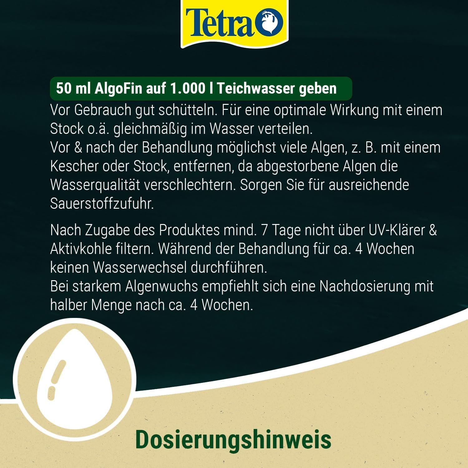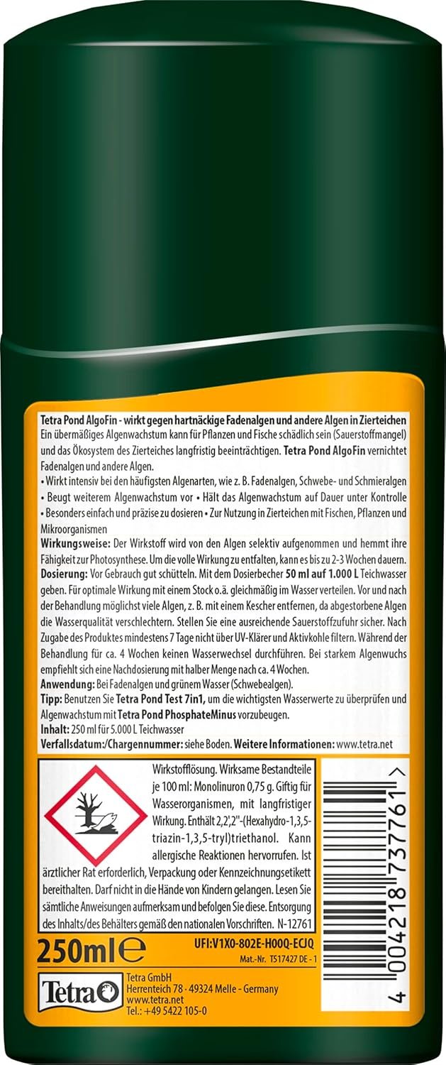 Bei sachgemäßer Anwendung unschädlich für Wasserpflanzen, Fische und Mikroorganismen. Bitte beachten Sie die Gebrauchsanweisung.