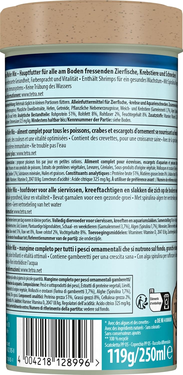 Die Waffeln sinken schnell zu Boden und durchnässen schnell, ohne sich aufzulösen. Das Futter ist für die am Grund lebenden Fische leicht aufzunehmen und sehr gut verdaulich, was zu klarem Wasser und einer besseren Wasserqualität beiträgt