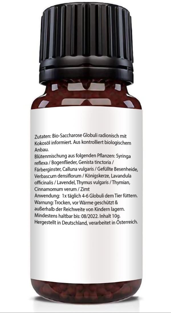 Natürliche Behandlung gegen Schädlingsbefall. 4 – 6 Globuli direkt verwenden oder unter das Futter mischen. Besonders empfehlenswert für Tierliebhaber. – Auch für Welpen geeignet.