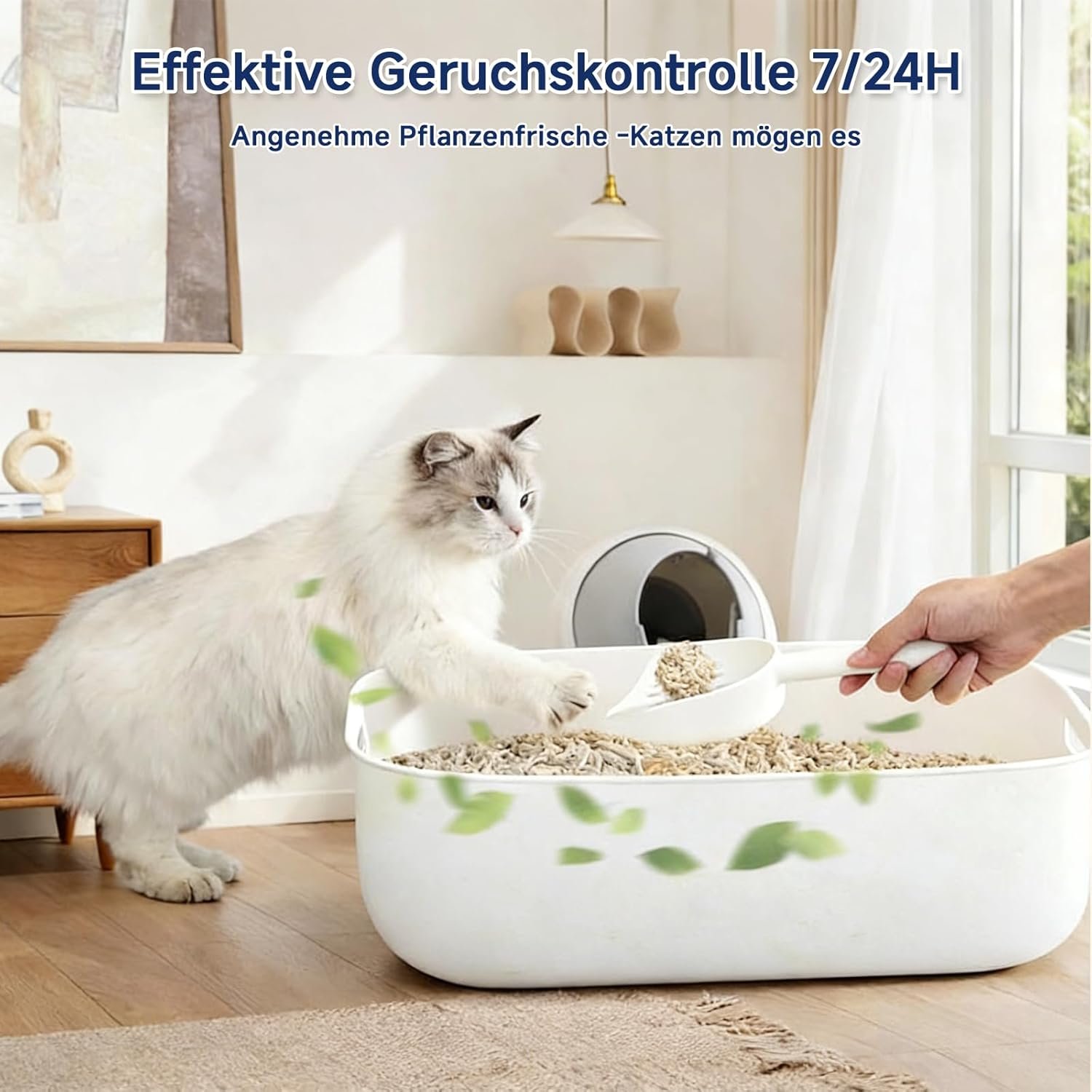 Effektive Geruchskontrolle in der Katzentoilette – Bindet unangenehme Gerüche zuverlässig und unterstützt ein länger frisches Raumklima, insbesondere in Haushalten mit regelmäßig genutzter Katzentoilette.