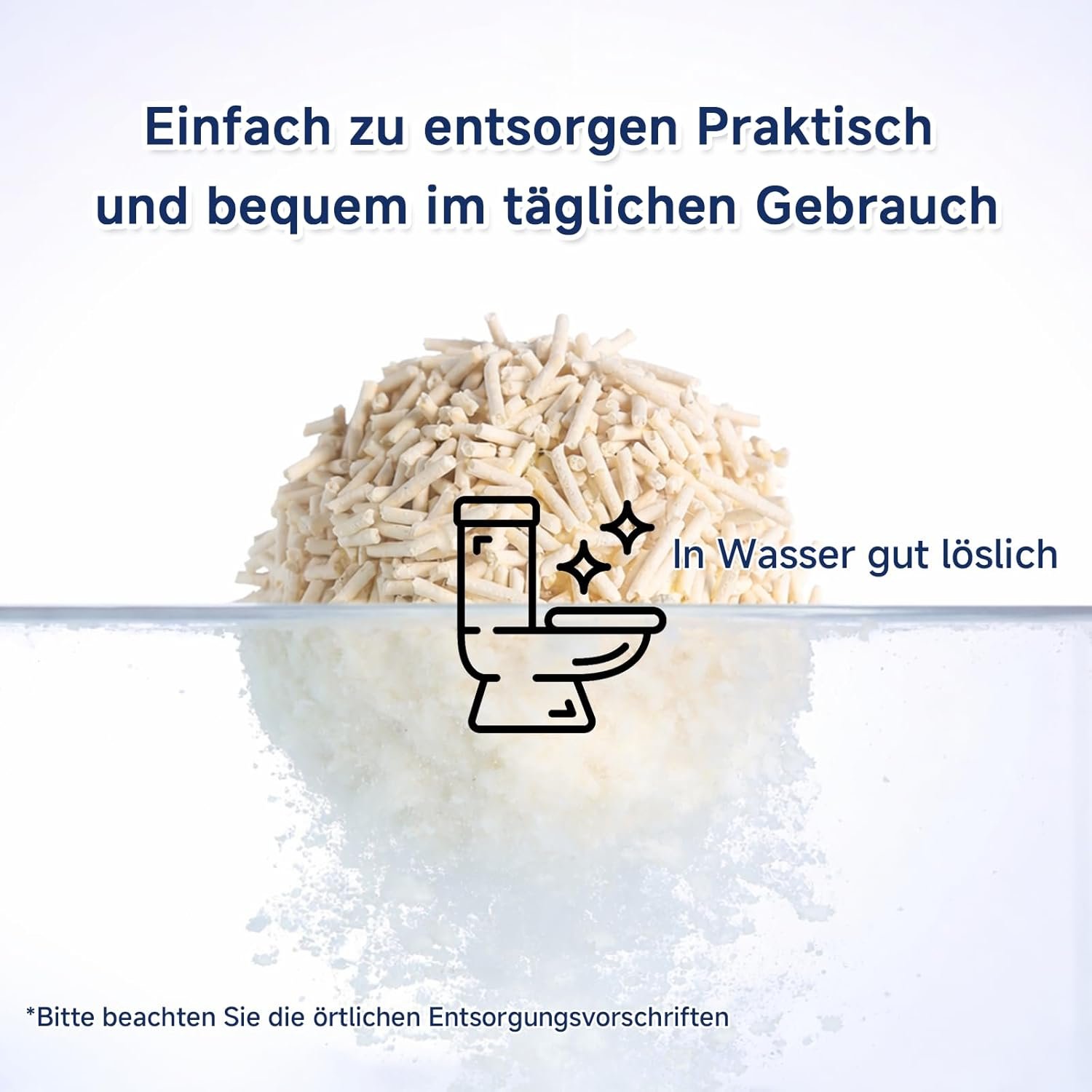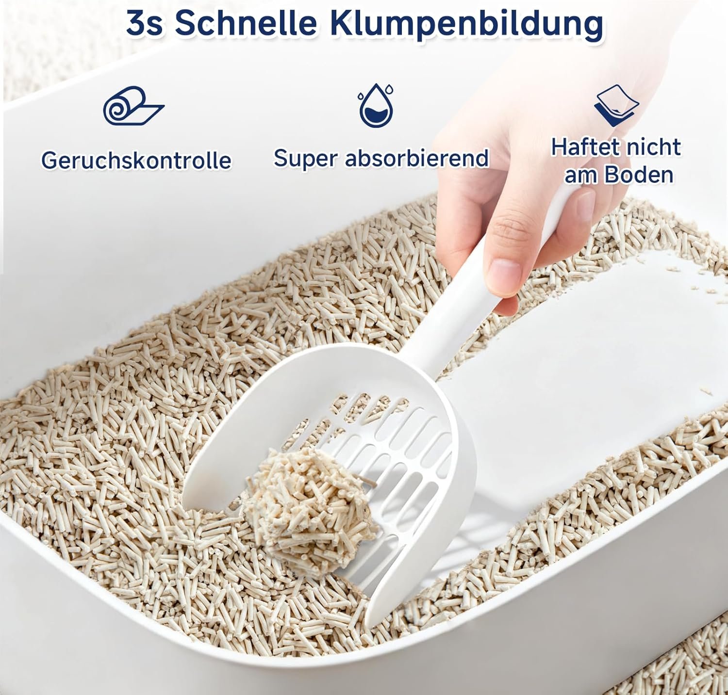 Klumpende Katzenstreu mit schneller Klumpenbildung (ca. 2-3 Sekunden) – Bildet feste, stabile Klumpen, die nicht zerfallen und sich besonders leicht aus der Katzentoilette entfernen lassen.
