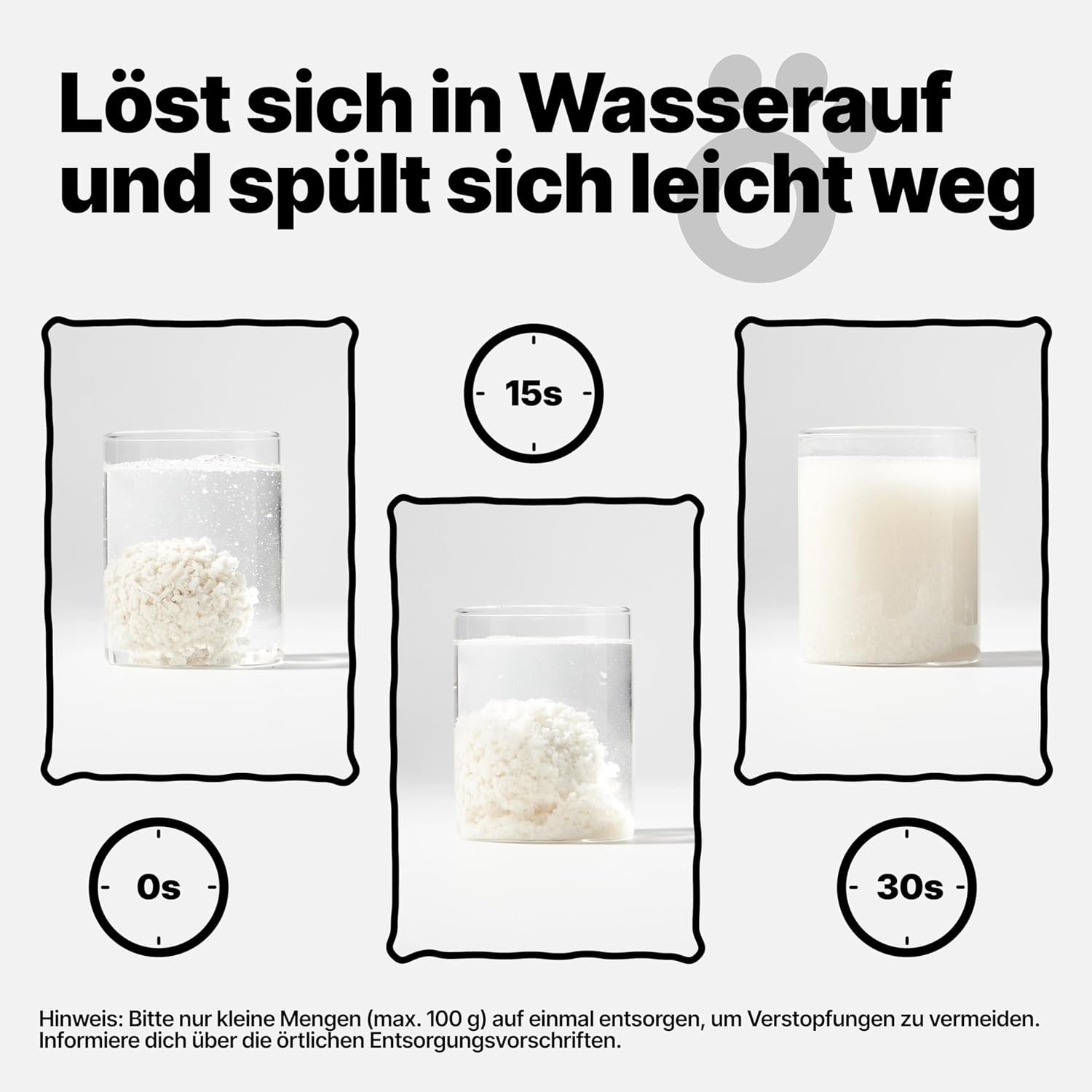 TOILETTENFREUNDLICH & EINFACHE ENTSORGUNG – Die wasserlöslichen Klumpen können direkt in der Toilette entsorgt werden (max. 100 g auf einmal) – kein mühsames Entsorgen mehr nötig. Eine hygienische und komfortable Alternative zu herkömmlichem Katzensand