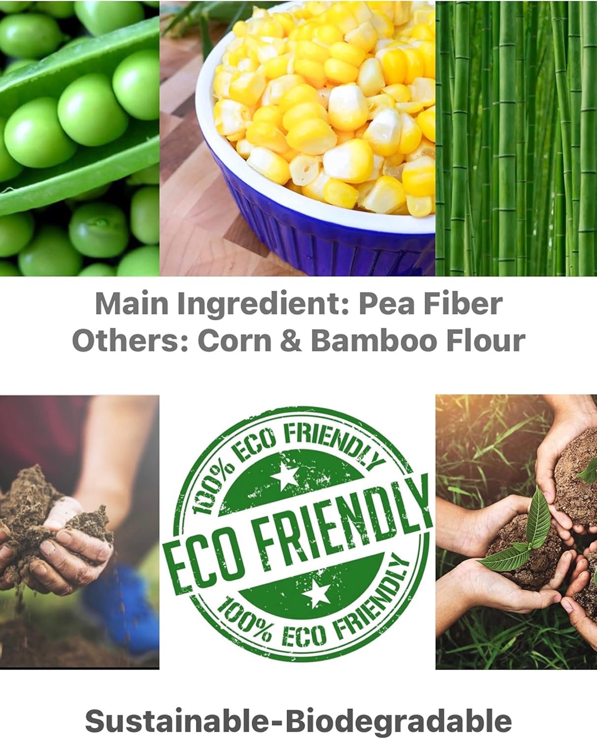 ESSBARE ZUTATEN – Wir verwenden hauptsächlich Erbsenfasern sowie Mais und Maisstärke. 100 % natürlich und gesund