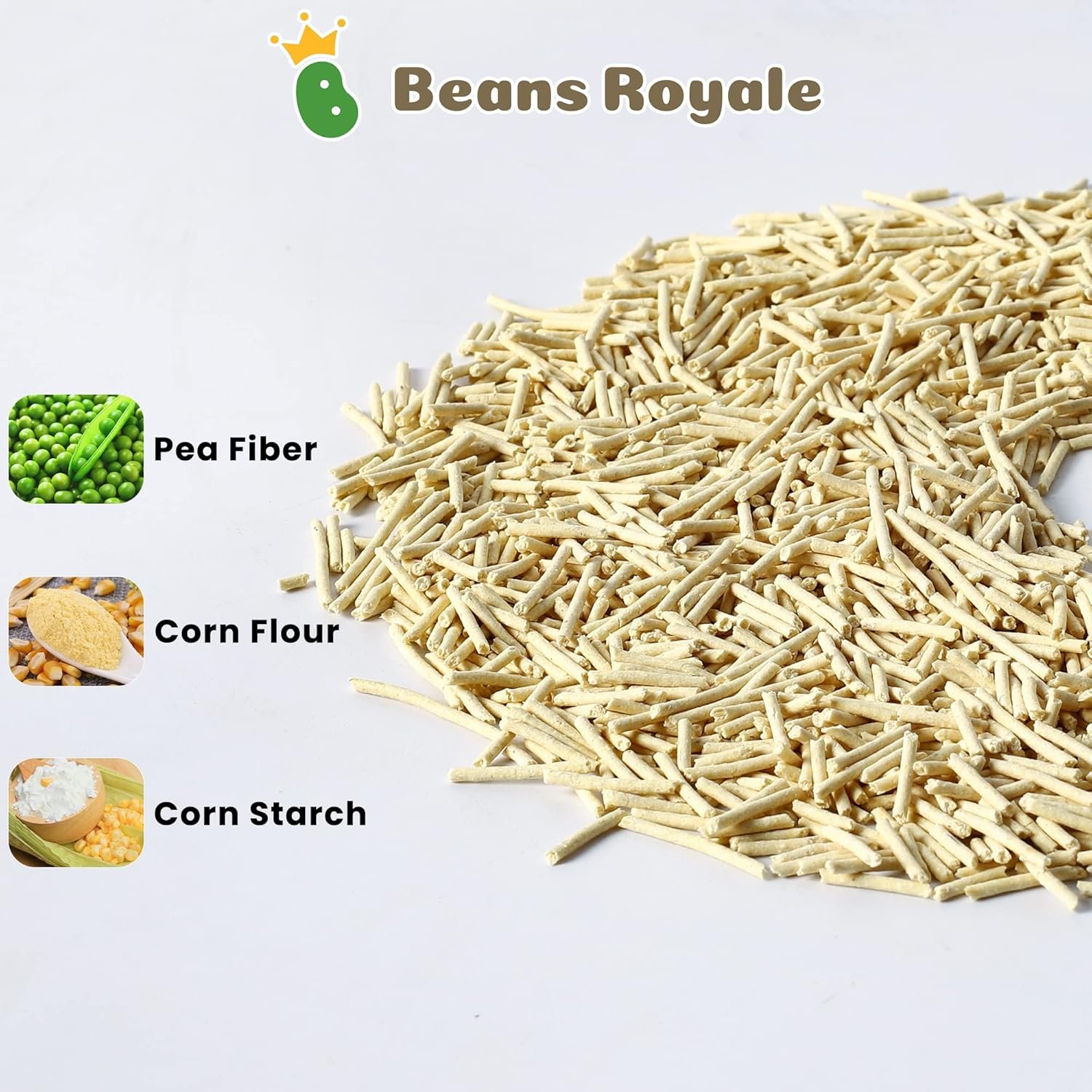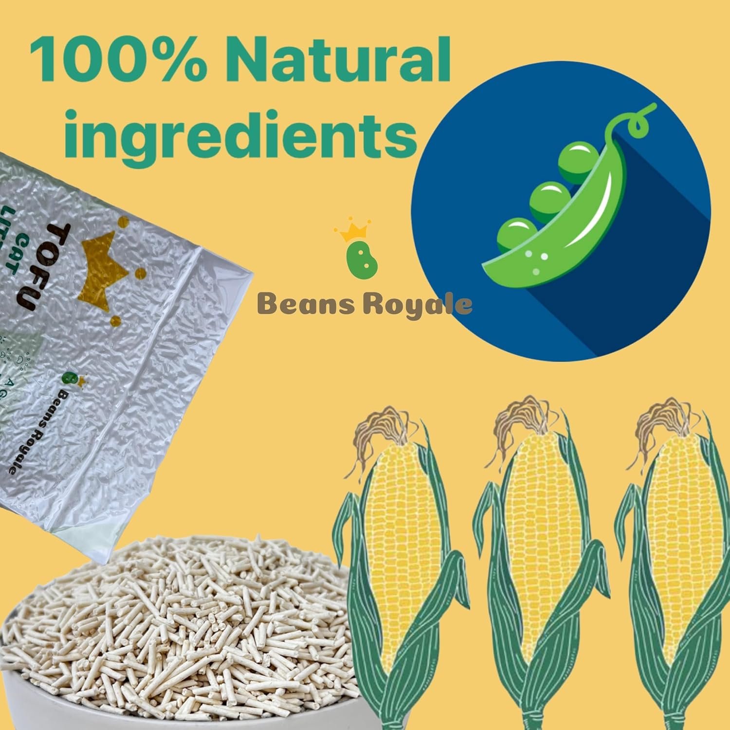 Beans Royale Tofu Katzenstreu, klumpendes Katzenstreu, ausspülbar, Erbsenfasern, staubfrei, Geruchskontrolle, spurenarm