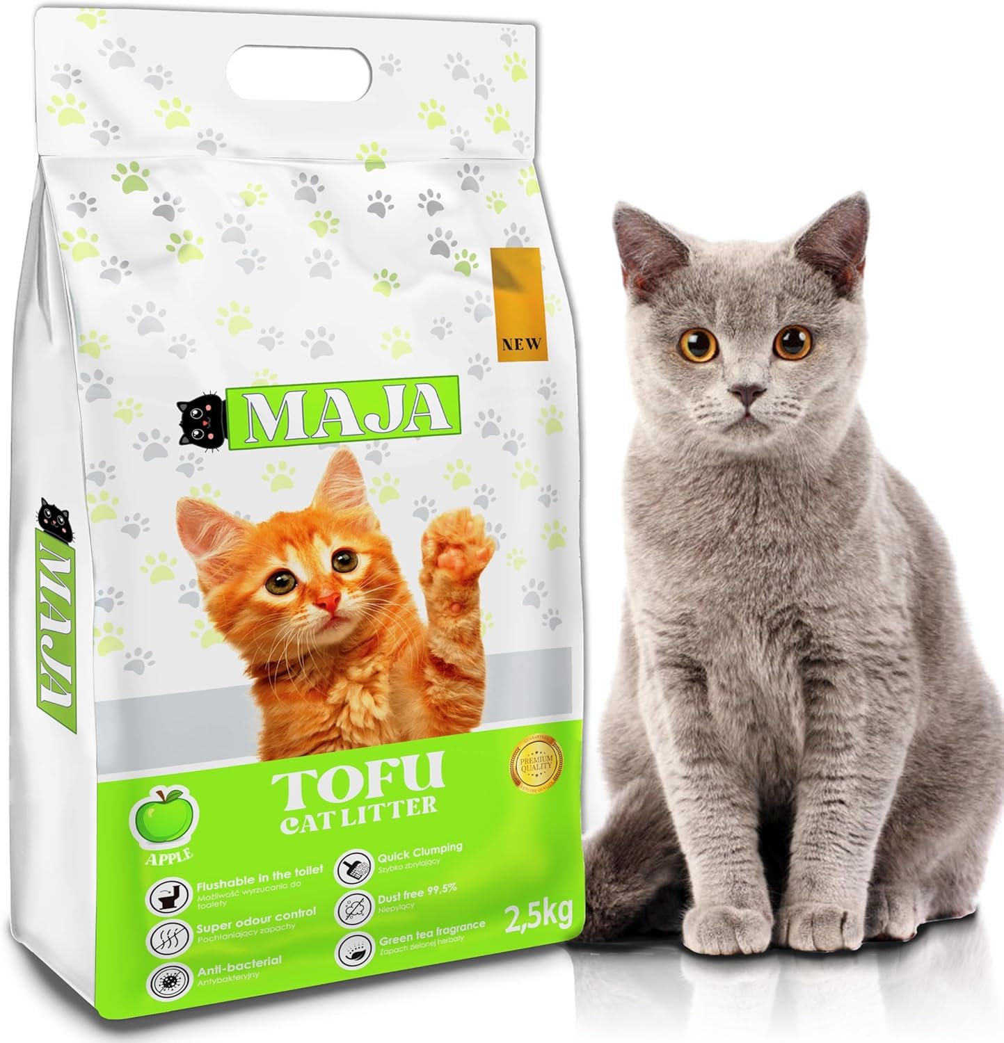 Organische und ökologische Zusammensetzung – Tofustreu „MAJA“ ist 100 % biologisch, aus Bio-Zutaten (Soja, Erbsen) hergestellt und daher sicher für Ihre Katze und den Planeten.