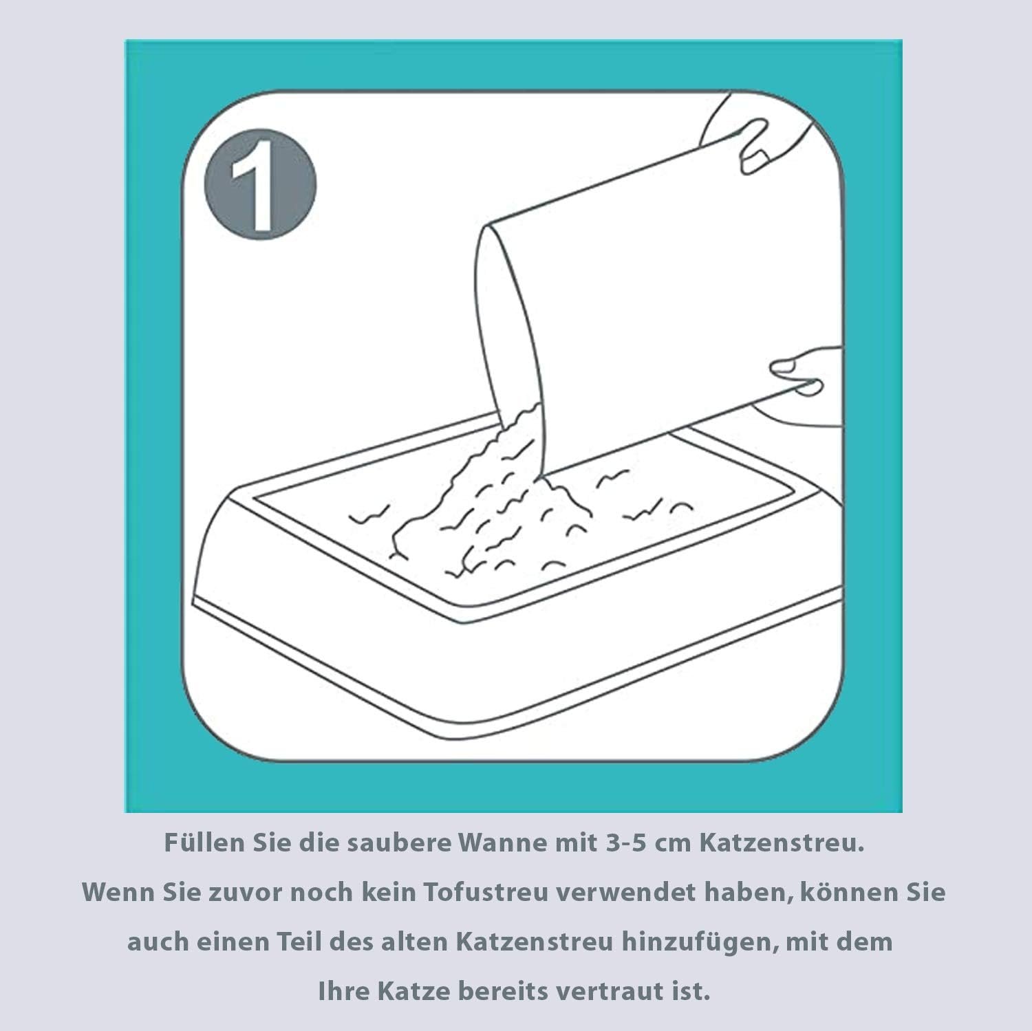 Wenn Sie zuvor noch kein Tofustreu verwendet haben und Ihre Katze noch nicht daran gewöhnt ist, können Sie auch einen Teil das bisherigen Katzenstreu hinzufügen mit dem Ihre Katze bereits vertraut ist.