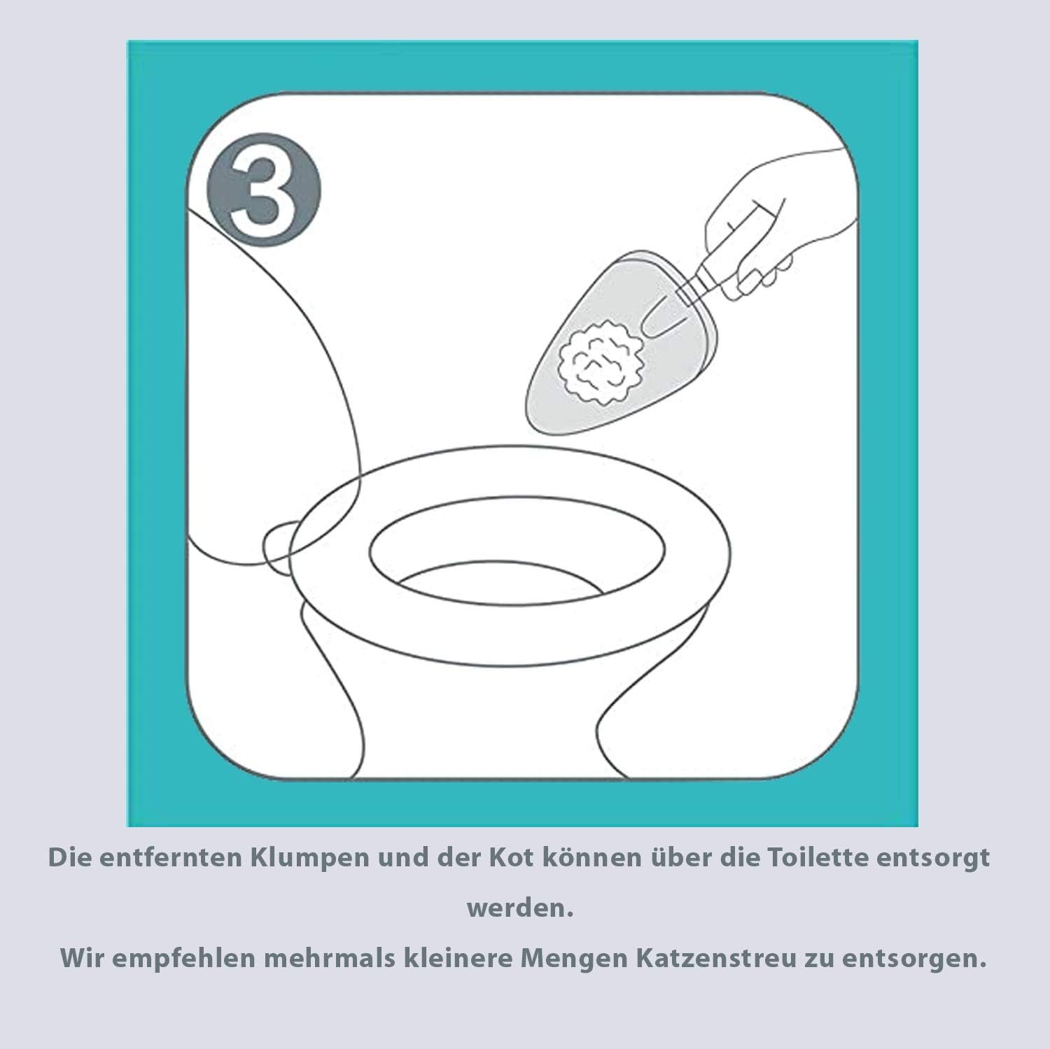 Die Klumpen und Kotreste können einfach über die Toilette entsorgt werden. Versapet Tofu Katzenstreu ist zu 100% wasserlöslich. Eine Entsorgung über den Biomüll ist ebenfalls möglich. (beachten Sie hierbei jedoch die Angaben Ihres regionalen Entsorgers).