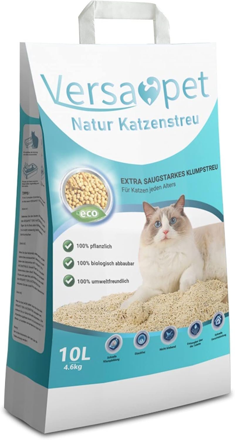 Versapet TOFU Katzenstreu ist 100 % natürlich und genau das Richtige für den umweltbewussten Katzenliebhaber. Das Katzenstreu löst sich schnell in Wasser auf und kann in der Toilette entsorgt werden. Es bildet feste Klumpen, bindet den Geruch schnell und ist staubfrei. Das TOFU Streu ist auch für Kitten geeignet.