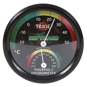 Das analoge Thermo/Hygrometer ist ideal für die Überwachung von Temperaturen und Luftfeuchtigkeit in Terrarien. Die Werte können in einem Bereich von -25 ° C bis 55 ° C (-13 ° F bis 131 ° F) für Temperatur und 0% bis 100% Luftfeuchtigkeit gelesen werden.
