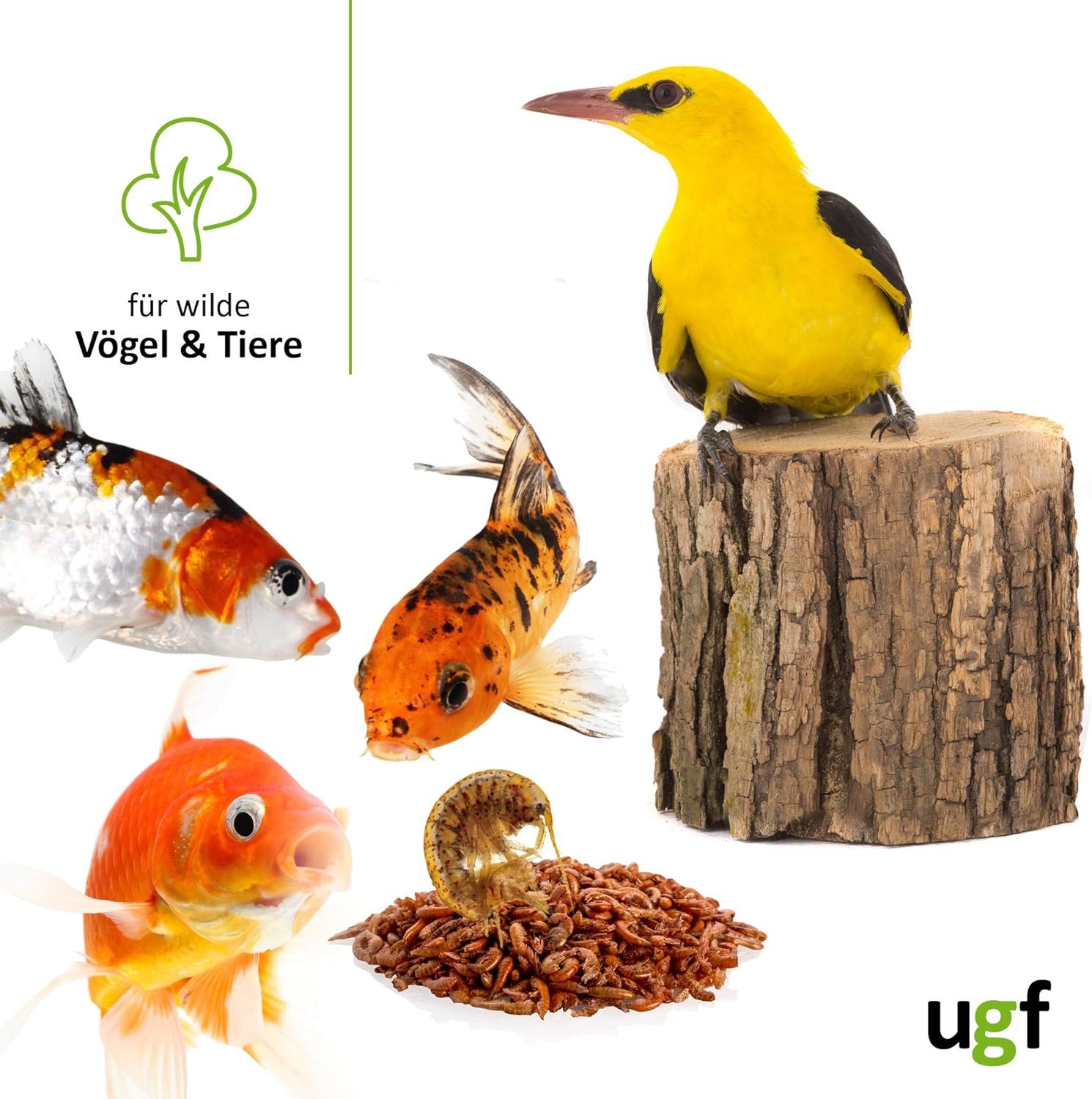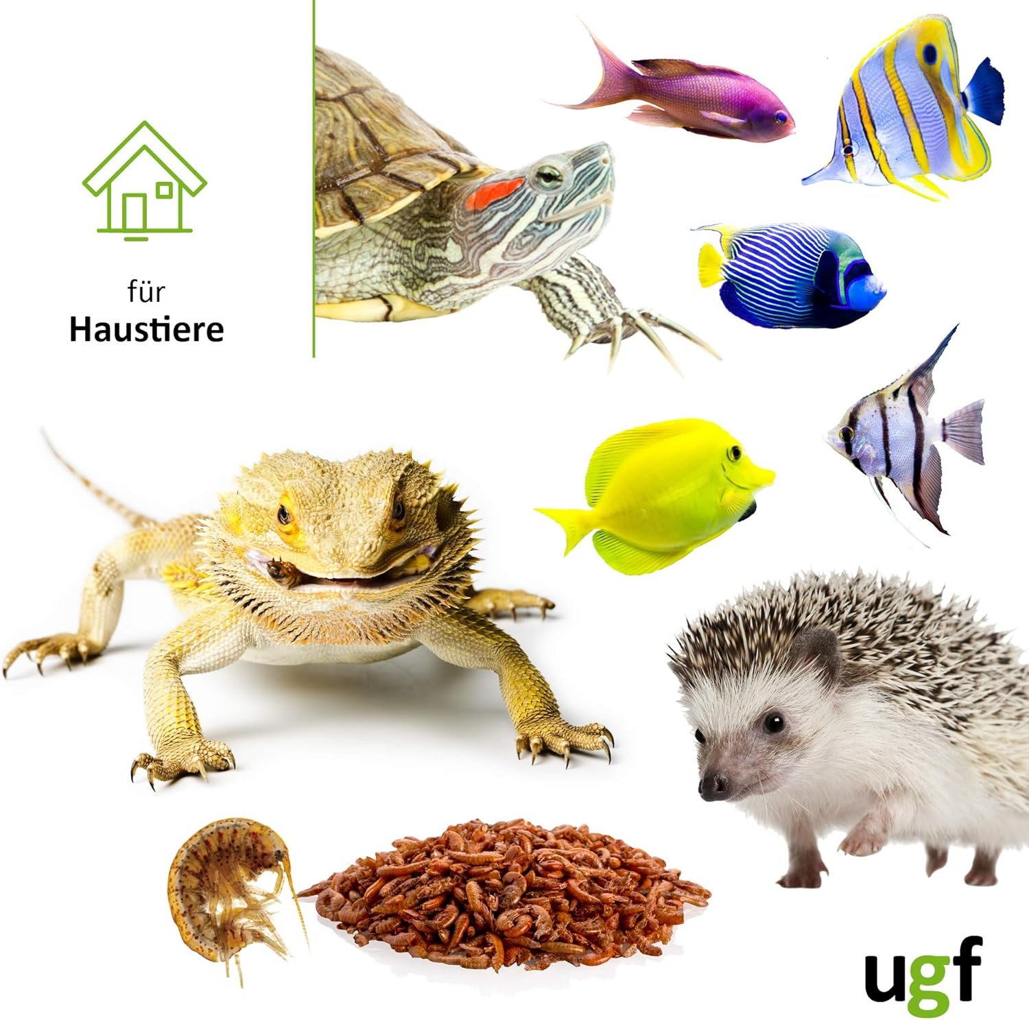ALLE TIERE – dieser „Insektensnack“ eignet sich hervorragend als Futter für Aquarienfische, Schildkröten, Vögel, Wildvögel, Hamster, Igel, Koi, Ratten und Axolotl.
