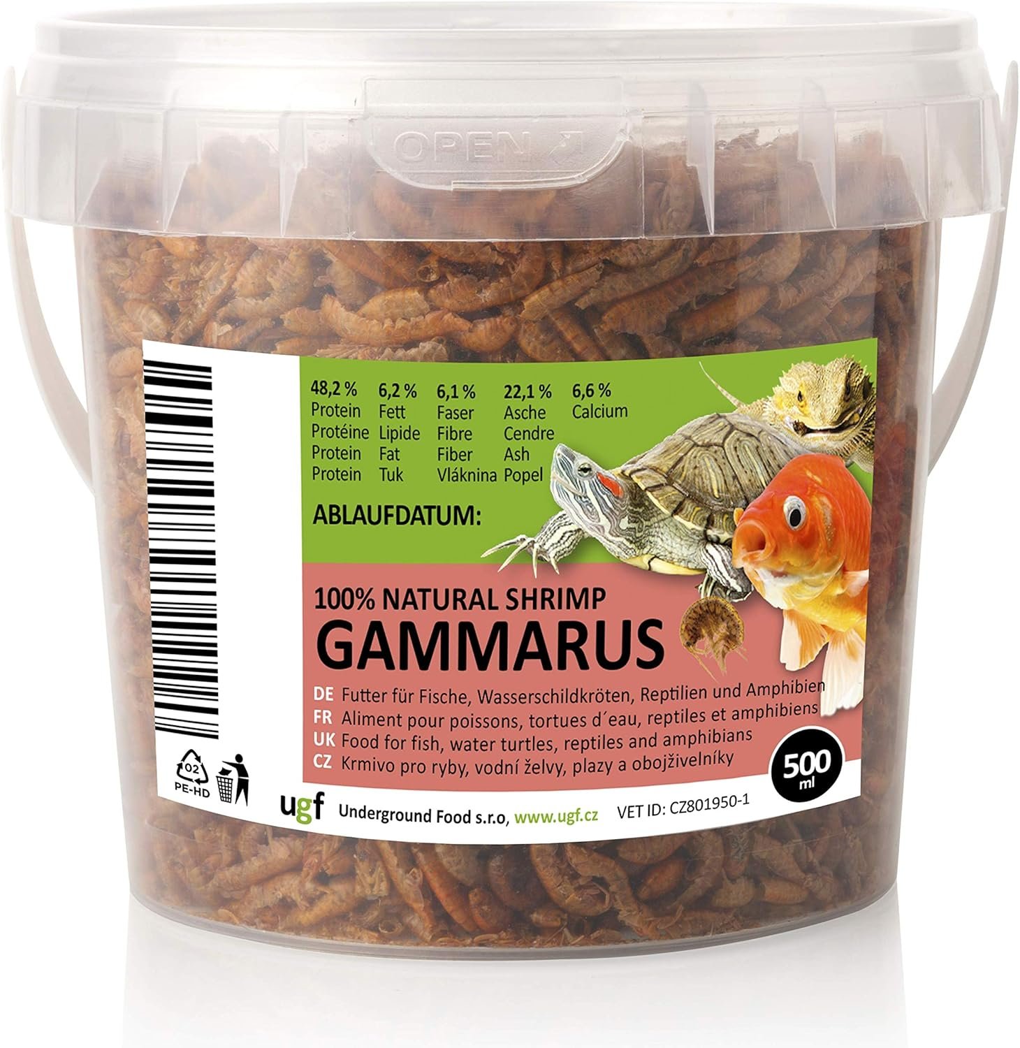 48 % Protein – Gammarus getrocknet ist eine ideale Ergänzung zu einer ausgewogenen Ernährung von Tieren. Im Vergleich zu anderen Insektenarten enthält es eine große Menge an Vitaminen, Kalzium, β-Carotin, Folsäure und Tannin. Es bietet eine abwechslungsreiche Ernährung für Haustiere und unterstützt so die Gesundheit erwachsener Tiere und die Entwicklung junger Tiere.
