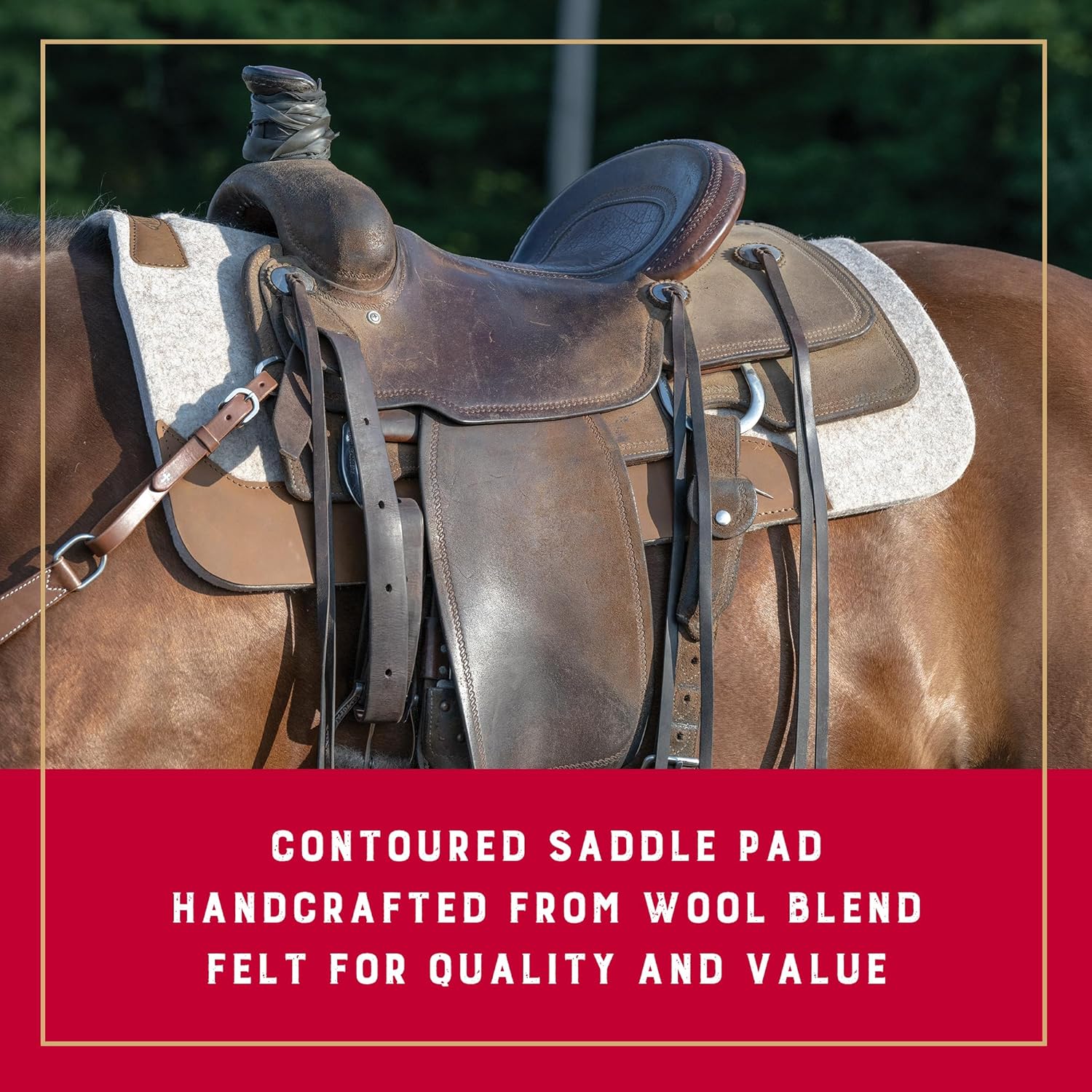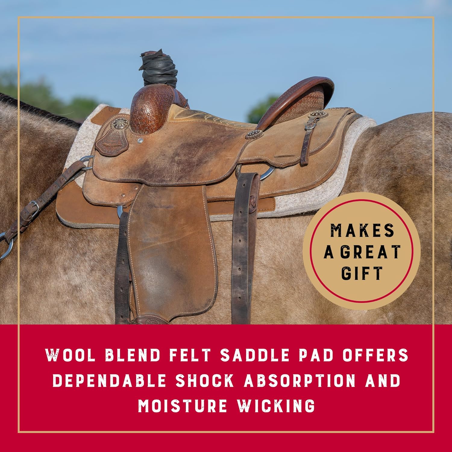 SATTELABZEICHEN AUS WOLLMISCHUNG – Sorgfältig entworfen mit einer hochwertigen Wollfilzmischung für zuverlässige Stoßdämpfung, zusätzliche Polsterung und Feuchtigkeitstransport, um Ihr Pferd gleichmäßig kühl zu halten; Unsere Westernpferde-Schabracke ist ideal für komfortables und stabiles Reiten