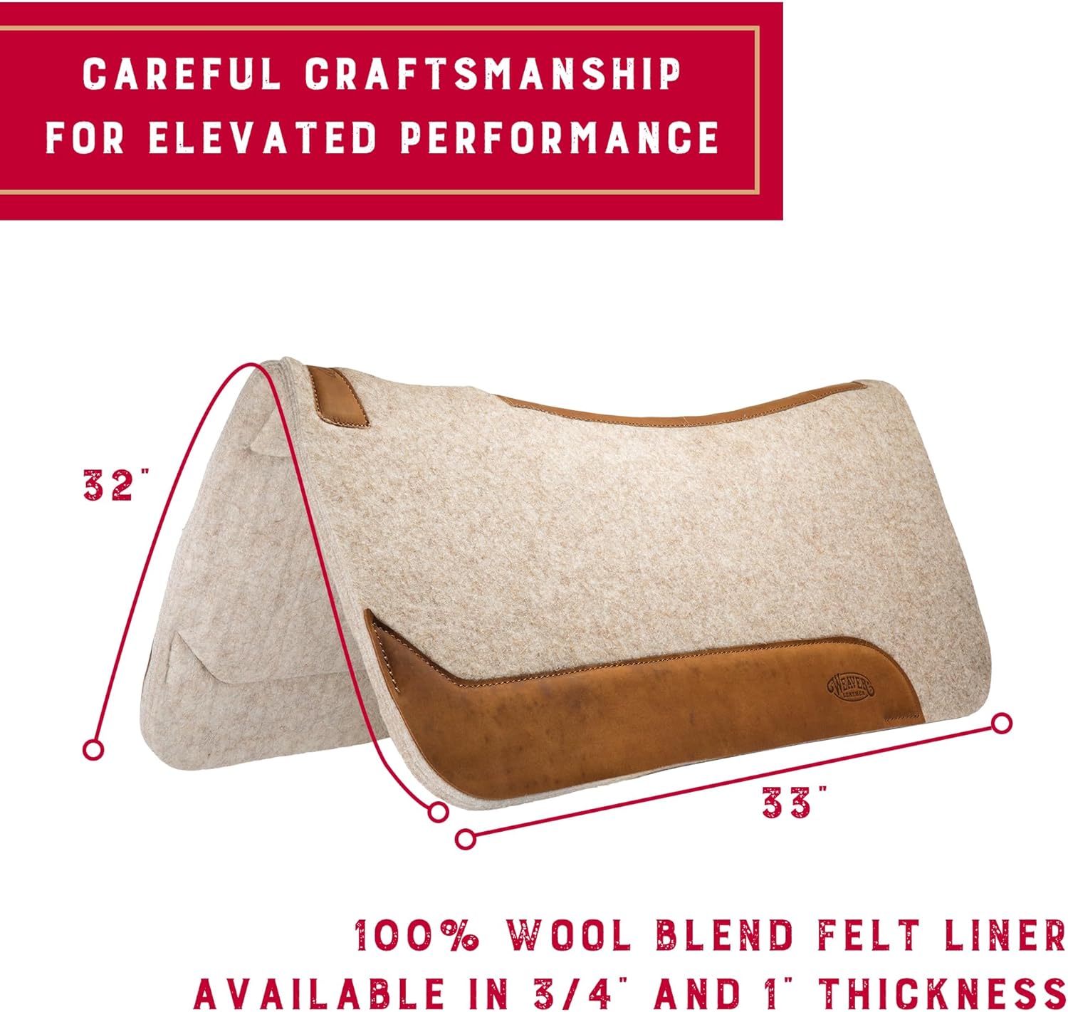 WEAVER EQUINE PFERDEUNTERLAGEN FÜR SATTEL Unsere konturierten Schabracken aus Wollmischungsfilz sind die ultimative Lösung für ein komfortables und stabiles Reiterlebnis. Diese weiche Schabracke ist mit fortschrittlicher Feuchtigkeitstransport- und Stoßdämpfungstechnologie ausgestattet, lindert effektiv Druckpunkte und sorgt dafür, dass Ihre Fahrten reibungslos und komfortabel sind. Dieser aus hochwertigen importierten Materialien hergestellte Westernsattel-Sitzkissenbezug sorgt nicht nur für zusätzliche Polsterung und Feuchtigkeitstransport, sondern sorgt auch dafür, dass der gepolsterte Pferdesitz auch bei langen Ausritten kühl und bequem bleibt. Für dauerhaftes Design und Haptik wird Handwäsche empfohlen. Dank der sorgfältigen Verarbeitung und der außergewöhnlichen Passform können Sie sich ohne ständige Anpassungen auf Ihre Fahrt konzentrieren. Das Westernpad verteilt das Gewicht gleichmäßig und reduziert die Belastung für Ihren Rücken und den Rücken Ihres Pferdes. Mit seinem innovativen Design entlastet dieses Pferdepad Druckstellen und fördert eine bessere Kontrolle, Trainingsleistung und Ausdauer für Reiter und Pferd. Ob Freizeitreiter oder erfahrener Reiter, unsere vielfältigen Schabracken sind ein Muss für jeden, der zusätzlichen Komfort und Stabilität sucht. Pferdeschabracken sind ein unverzichtbares Accessoire für Pferde und ein tolles Geschenk für Pferdebesitzer und Reiter gleichermaßen.