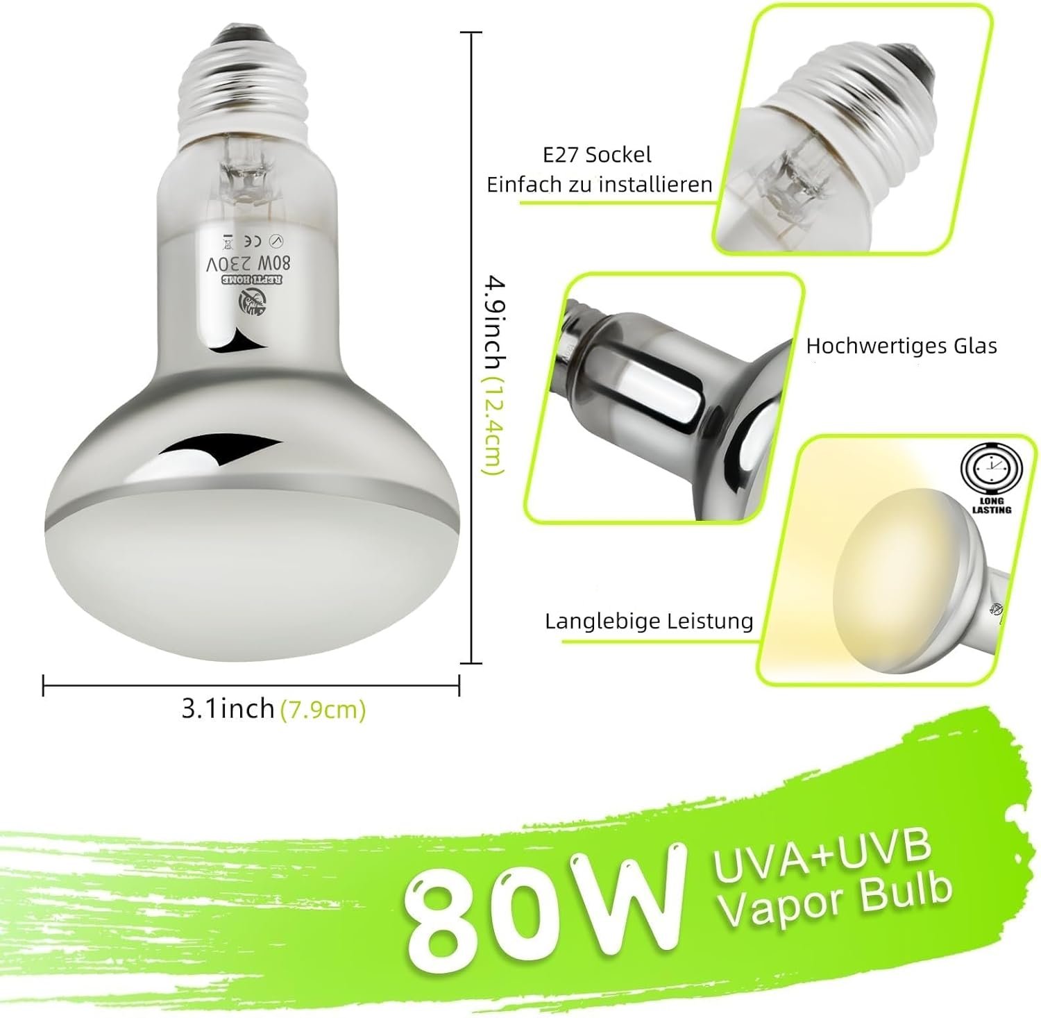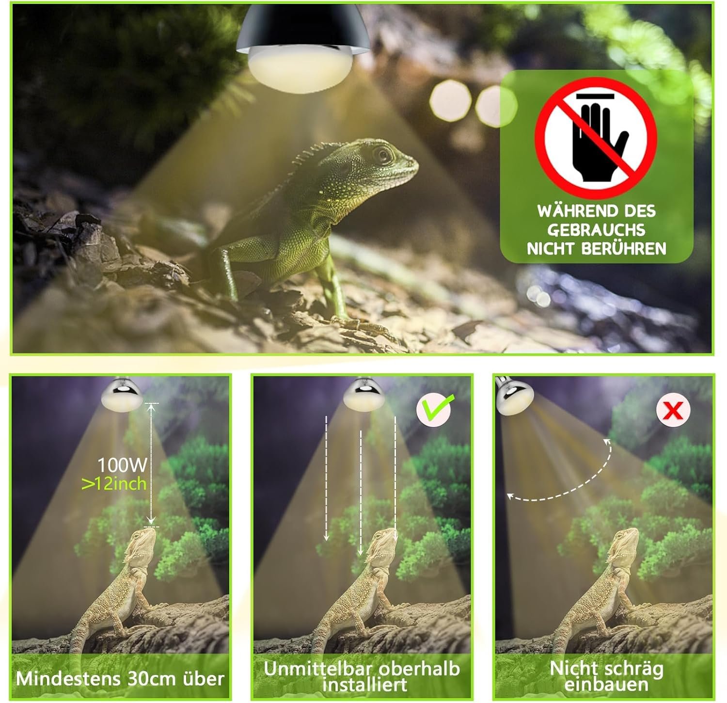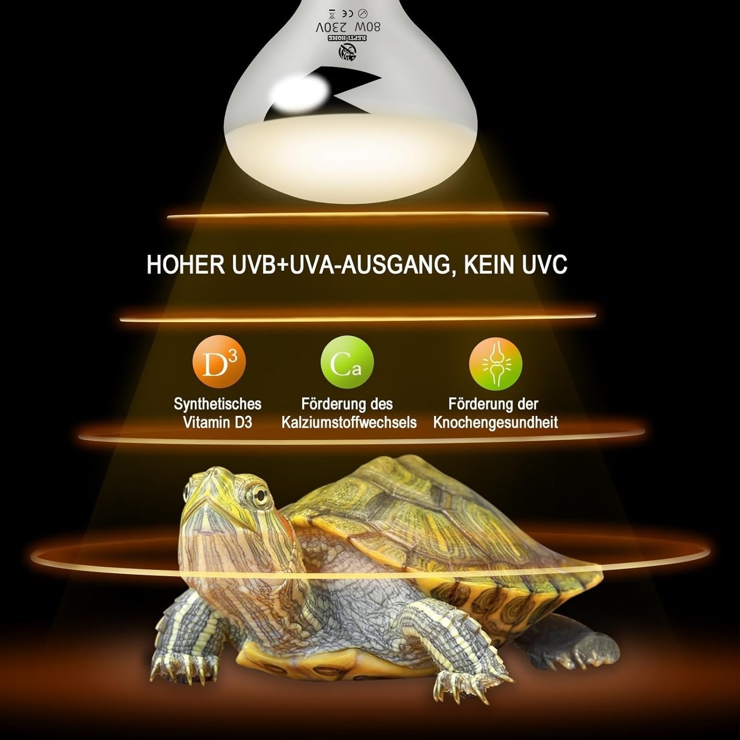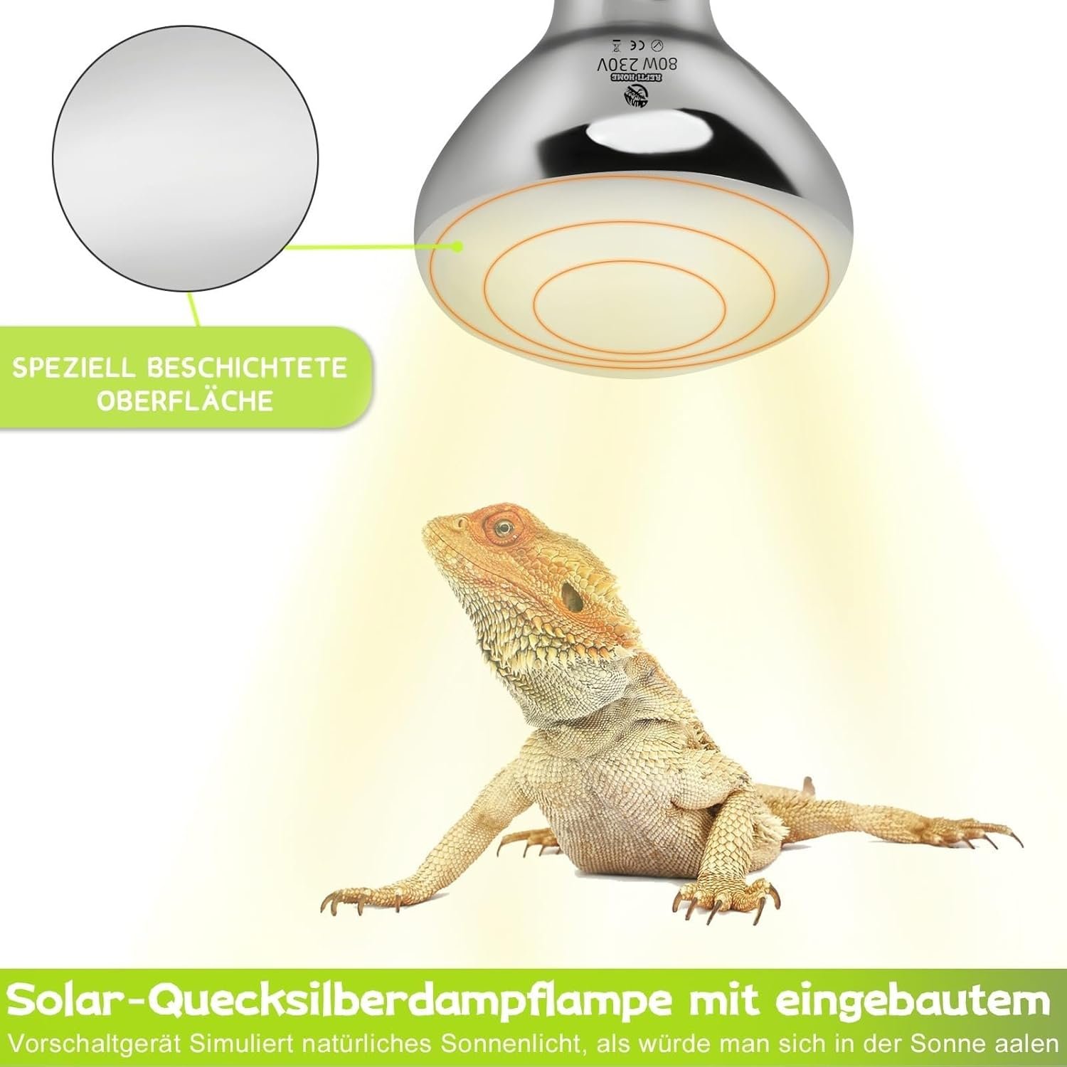 Die REPTI HOME UVA UVB haben wir mit 160W genommen, da der Abstand etwas weiter ist und eine etwas größere Fläche abgedeckt wird.