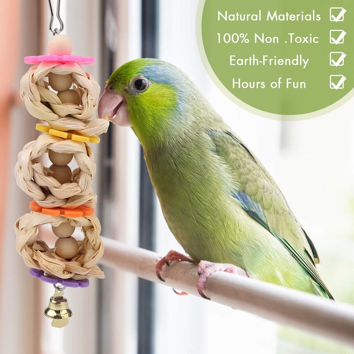 Ideales Vogelkäfig-Zubehör: Jedes Haustier-Vogelspielzeug verfügt über einen großen und ausreichend langen beweglichen Haken, passt in die meisten Käfige, der Stahlhaken lässt sich leicht am Käfig befestigen.