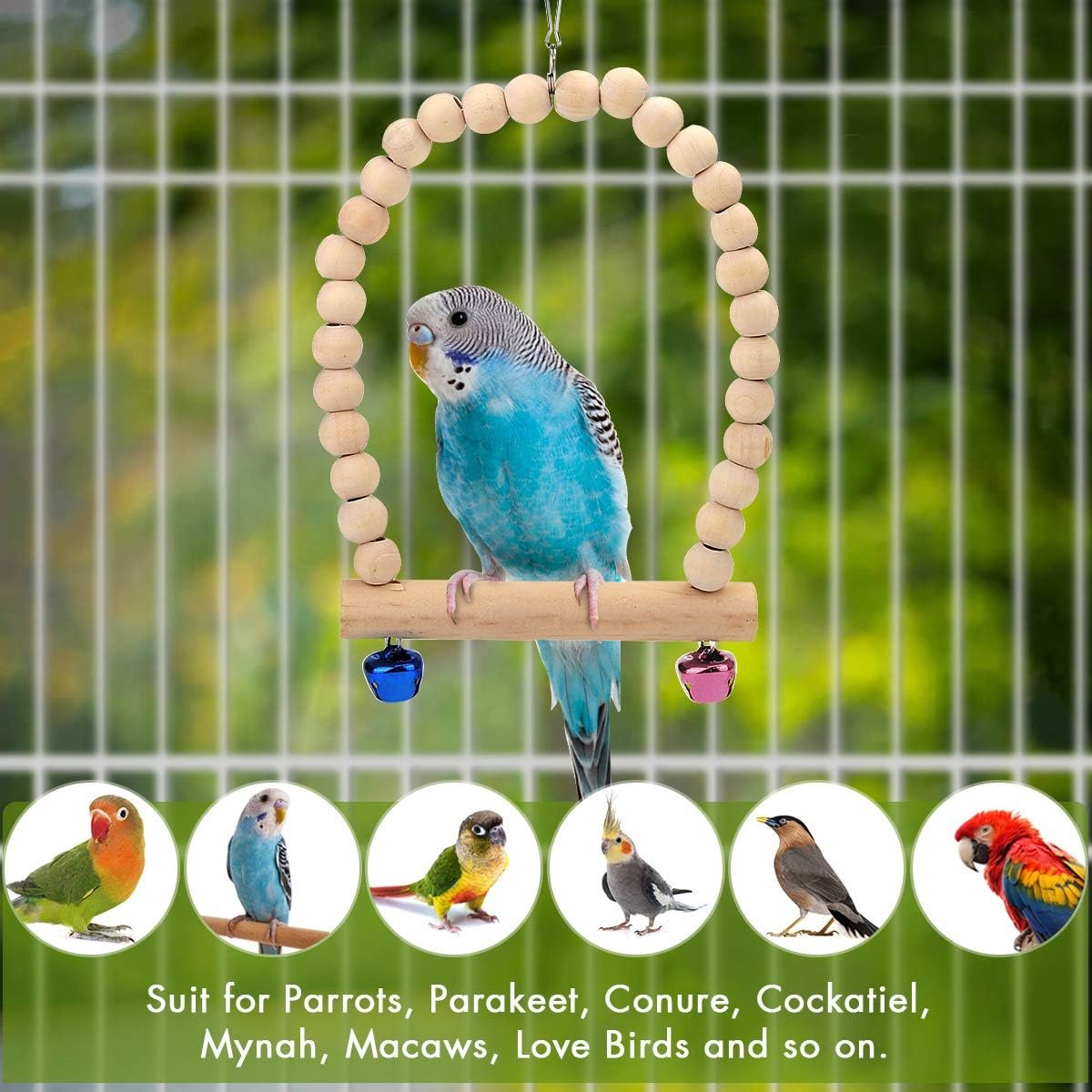 Ideales Vogelkäfig-Zubehör: Jedes Haustier-Vogelspielzeug verfügt über einen großen und ausreichend langen beweglichen Haken, passt in die meisten Käfige, der Stahlhaken lässt sich leicht am Käfig befestigen.