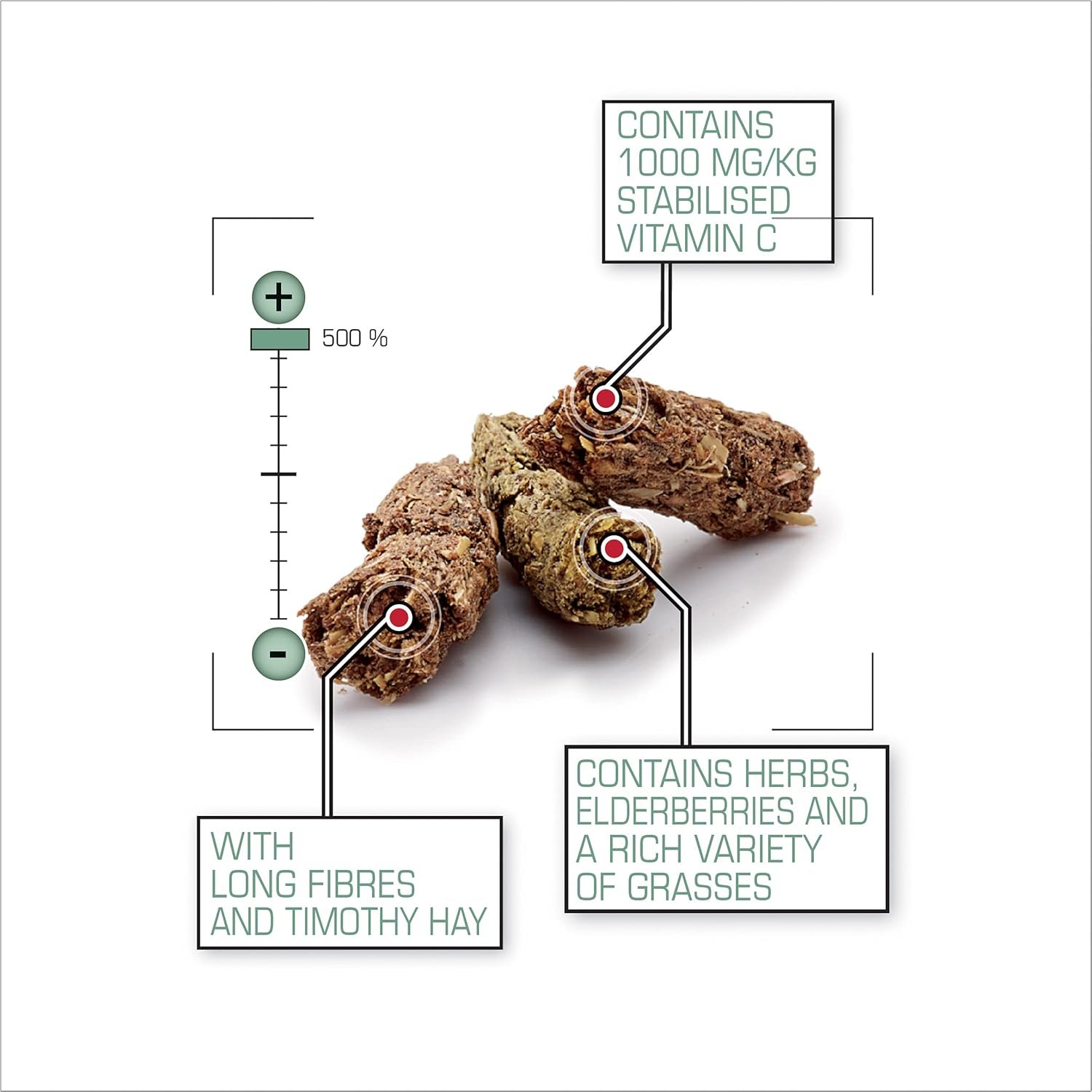 Extra Vitamin C: Bei Versele-Laga liegt uns das Wohlbefinden Ihres Haustieres am Herzen. Deshalb enthält Complete Cavia auch 1000 mg/kg stabilisiertes Vitamin C, das für eine erhöhte Widerstandskraft und eine gute Gesundheit unerlässlich ist.