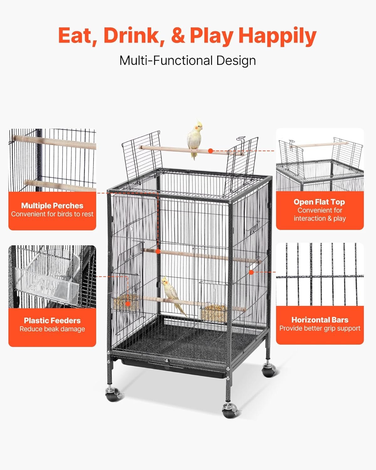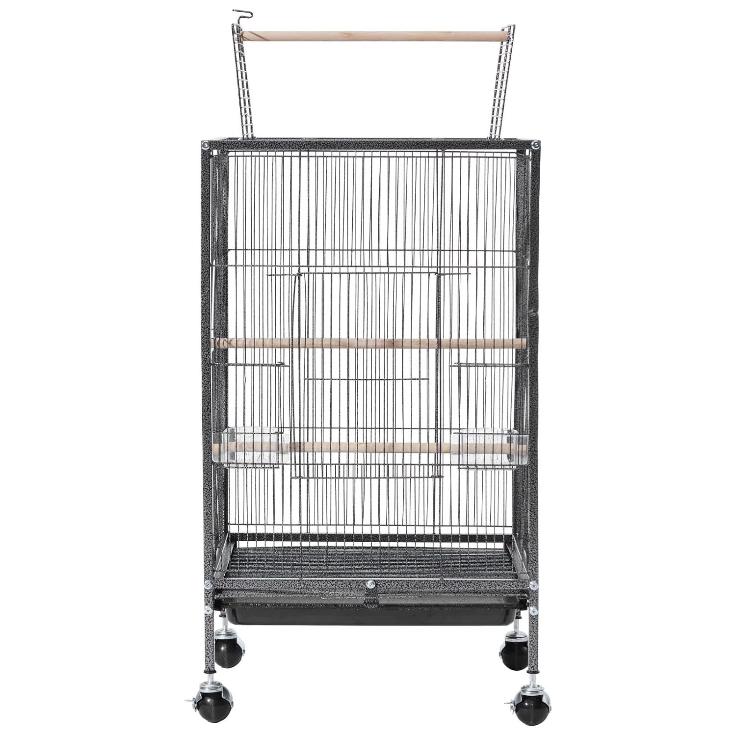 Mit Abmessungen von 460 x 460 mm (18 x 18 Zoll) und einem Gitterabstand von 10 mm (0,4 Zoll) bietet dieser Vogelkäfig ausreichend Platz für Aktivitäten von Sittichen, Unzertrennlichen, Nymphensittichen, Wellensittichen, Kanarienvögeln und anderen Vogelarten.