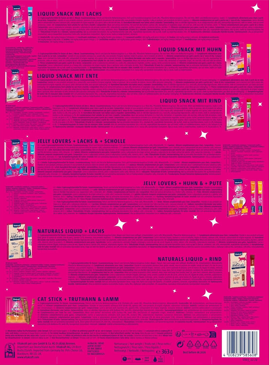 Die Snackvielfalt von Vitakraft verspricht Snackspaß in bester Qualität. Klassiker wie unsere flüssigen Snacks oder Gelee-Liebhaber steigern die Vorfreude auf Weihnachten – Snack für Snack!
